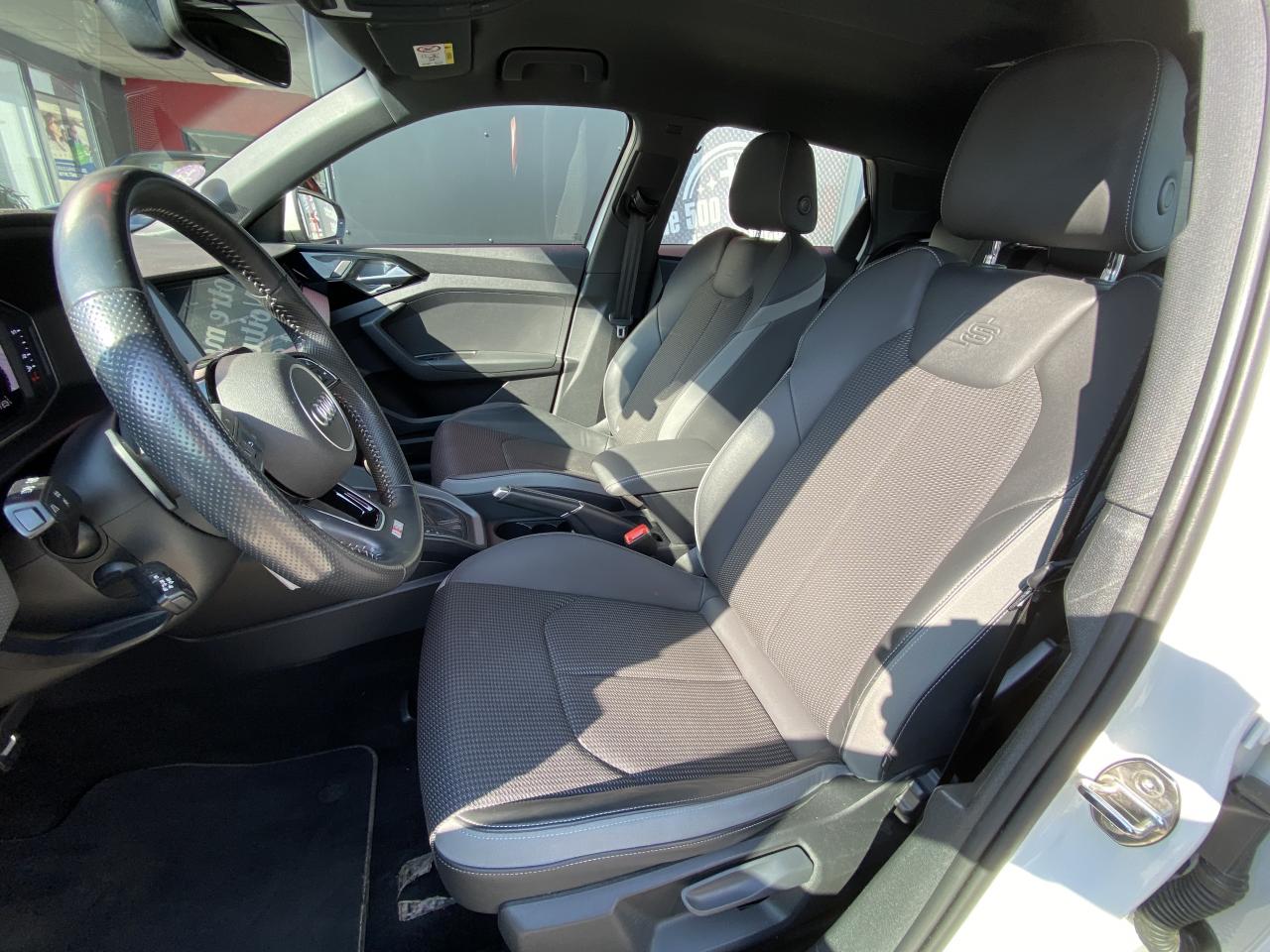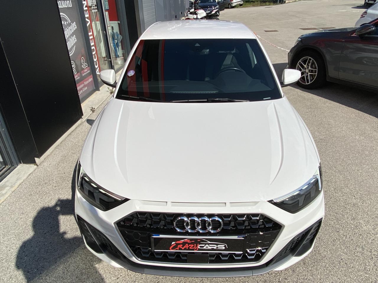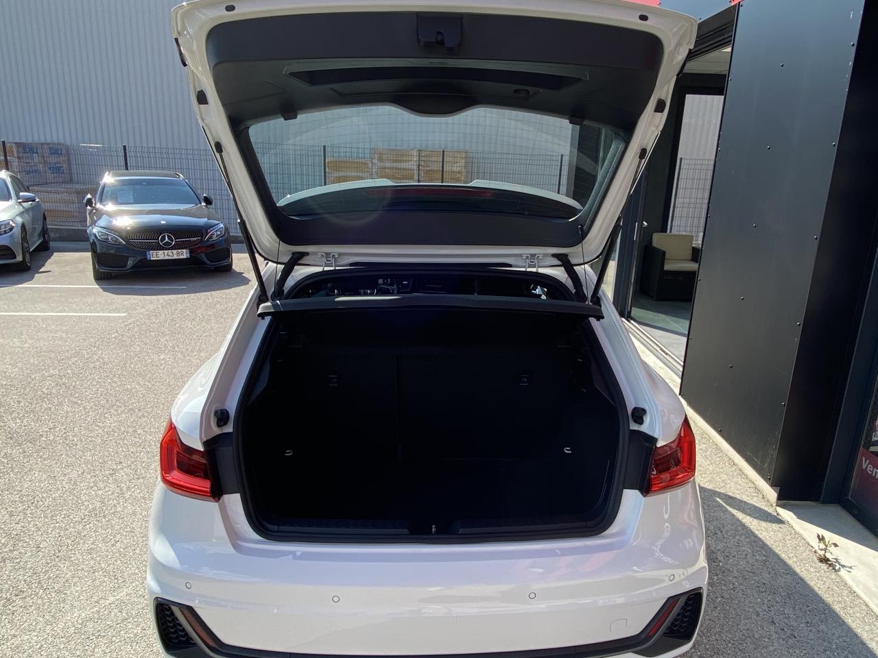 Aide au stationnement av-ar - audi parking system plusAssistant de démarrage en côteAudi connect sécurité et assistance en ligneAudi Drive SelectBadges S line sur les ailes avantBecquet de pavillon S lineCiel de pavillon en tissu noirClignotants LED intégrés dans les rétroviseursClimatisation automatique confort 2 zonesDétecteur de pluie et de luminositéFeux de brouillard ARInterface BluetoothLame de becquet avant en Gris Platine matLève-vitres électriques à l'avant et à l'arrièreLimiteur de vitesseMoulures de seuil avec insert en aluminium à l’avantPare-chocs avant et arrière S LinePeinture vernie Blanc CortinaRégulateur de vitesseRétroviseurs extérieurs électriques et dégivrants incluant buses de lave-glaces dégivrantesSièges avant réglables en hauteurSièges Sport cuir/tissu avec surpiqûre contrastée et estampillage S sur le dossier des sièges avantStyle aluminium à l’intérieurSystème de fixation ISOFIX pour siège enfant aux places passager avant et latérales arrièreSystème Stop & Start