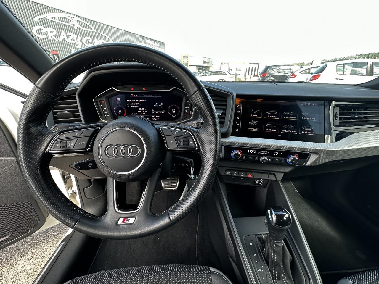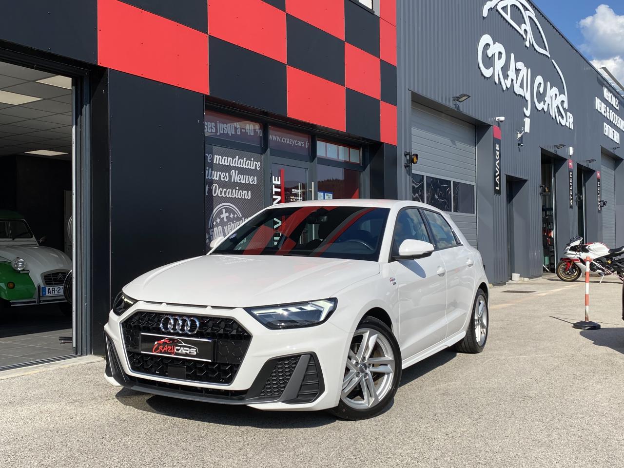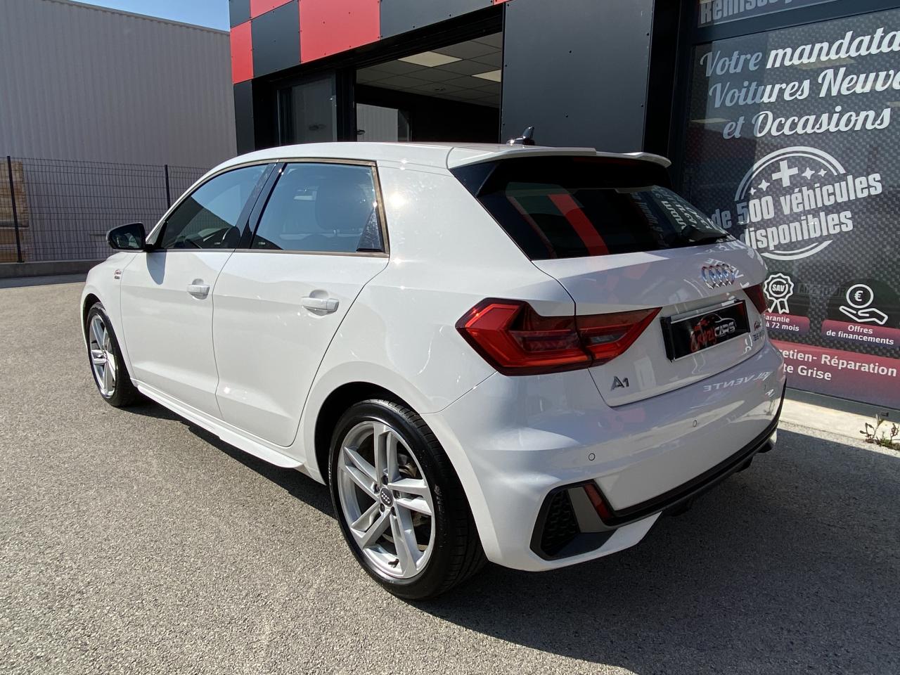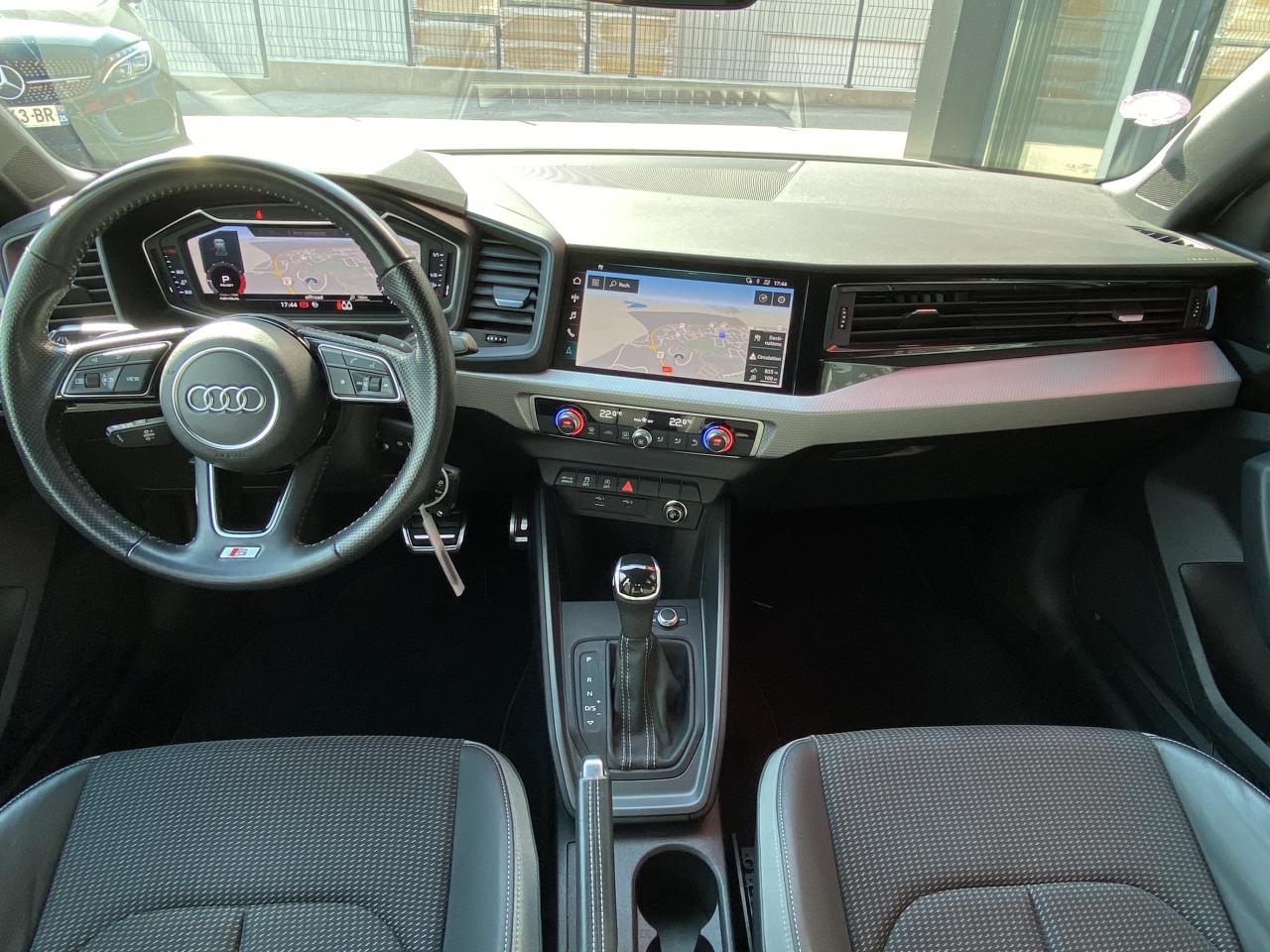 Aide au stationnement av-ar - audi parking system plusAssistant de démarrage en côteAudi connect sécurité et assistance en ligneAudi Drive SelectBadges S line sur les ailes avantBecquet de pavillon S lineCiel de pavillon en tissu noirClignotants LED intégrés dans les rétroviseursClimatisation automatique confort 2 zonesDétecteur de pluie et de luminositéFeux de brouillard ARInterface BluetoothLame de becquet avant en Gris Platine matLève-vitres électriques à l'avant et à l'arrièreLimiteur de vitesseMoulures de seuil avec insert en aluminium à l’avantPare-chocs avant et arrière S LinePeinture vernie Blanc CortinaRégulateur de vitesseRétroviseurs extérieurs électriques et dégivrants incluant buses de lave-glaces dégivrantesSièges avant réglables en hauteurSièges Sport cuir/tissu avec surpiqûre contrastée et estampillage S sur le dossier des sièges avantStyle aluminium à l’intérieurSystème de fixation ISOFIX pour siège enfant aux places passager avant et latérales arrièreSystème Stop & Start
