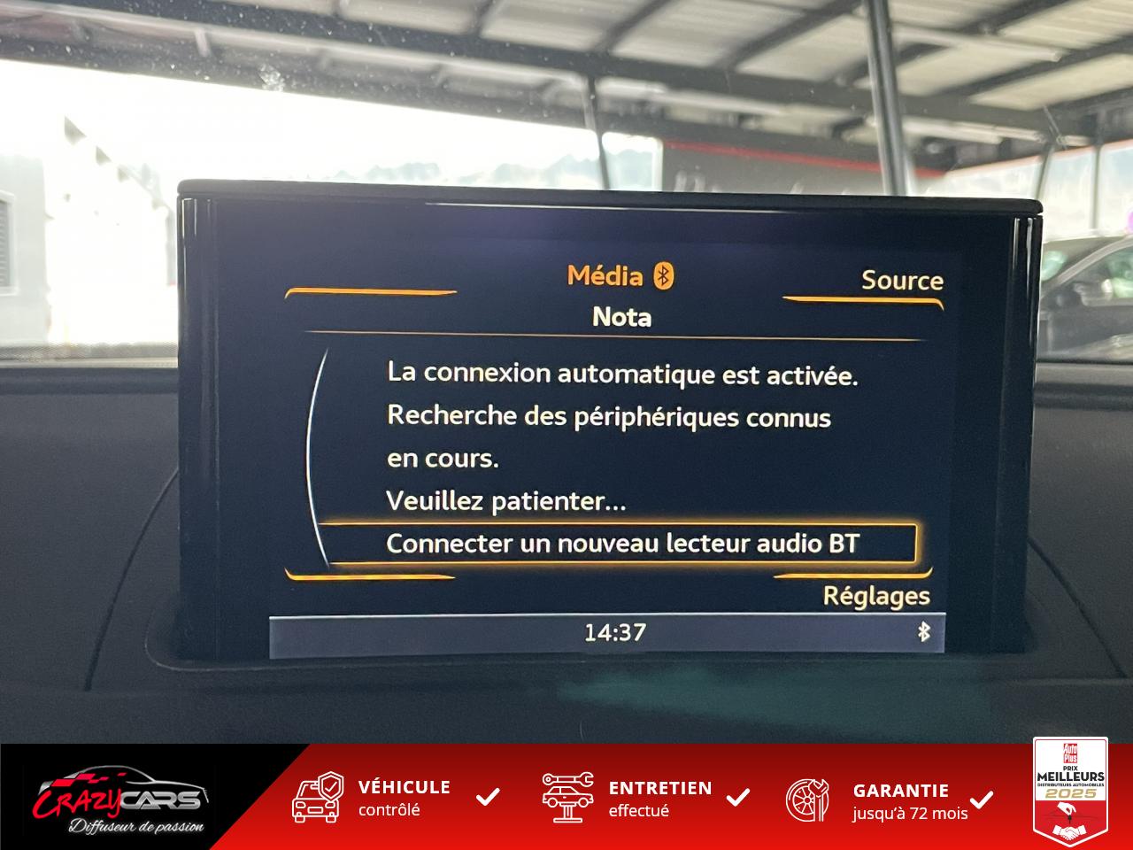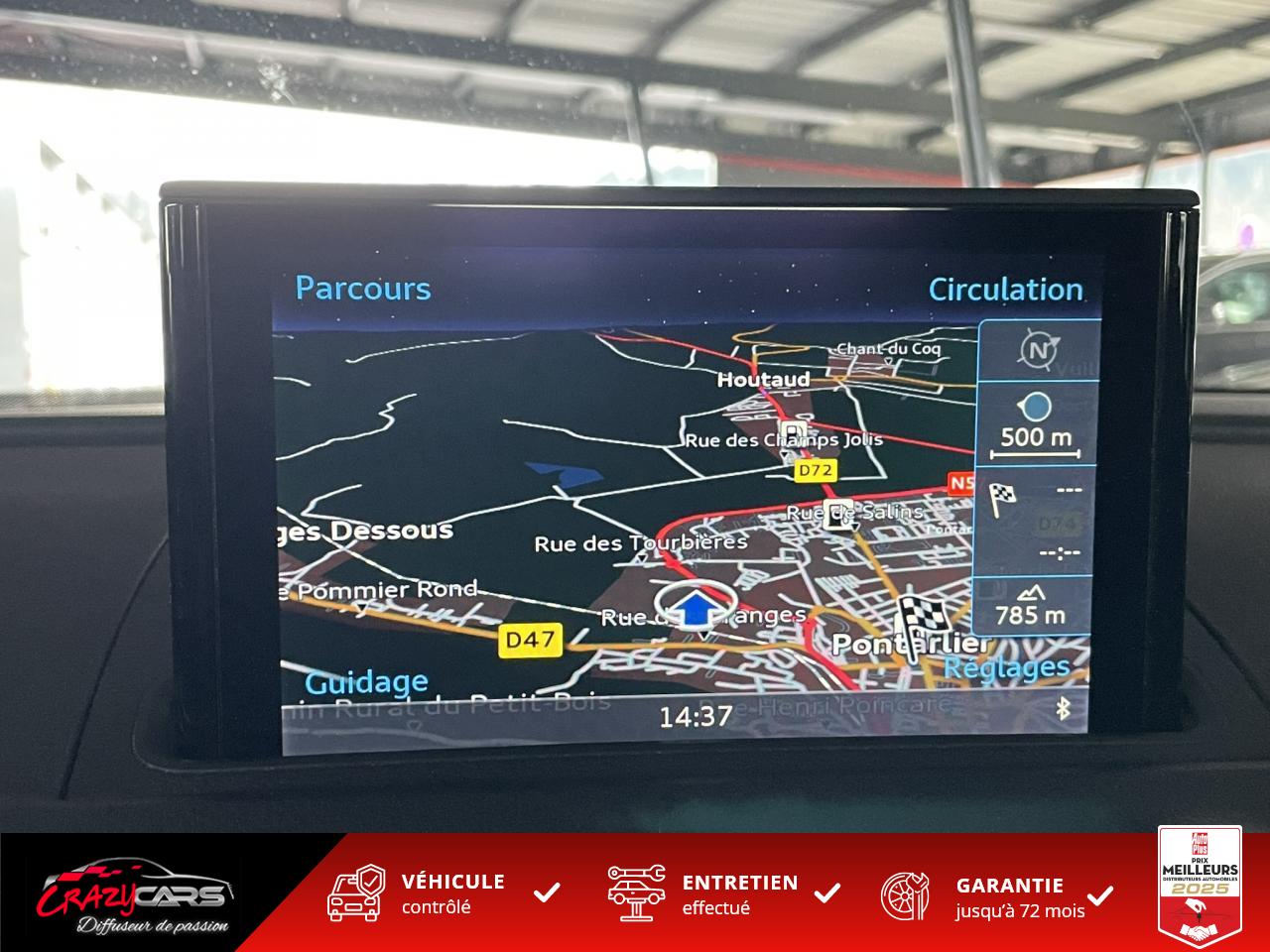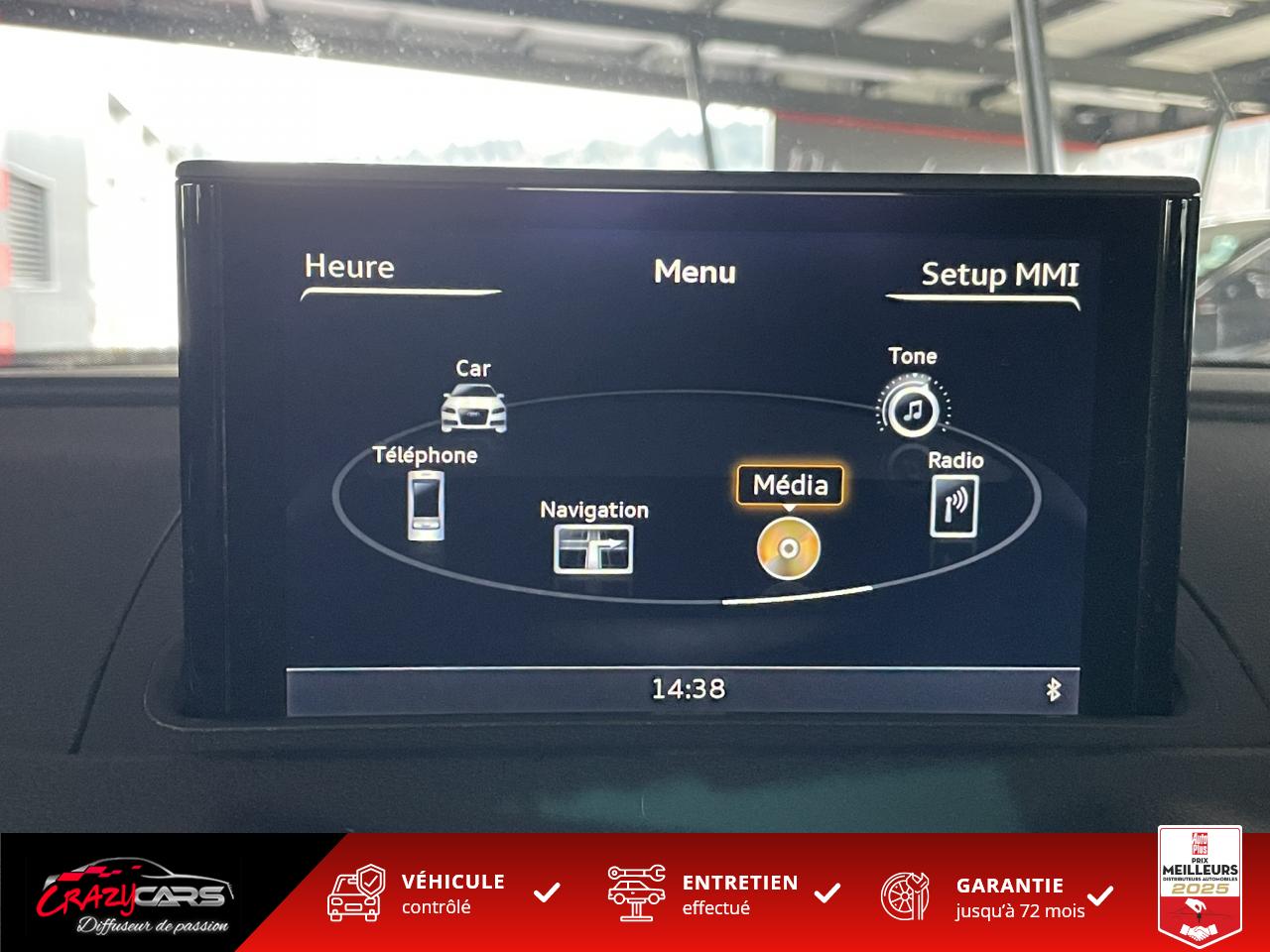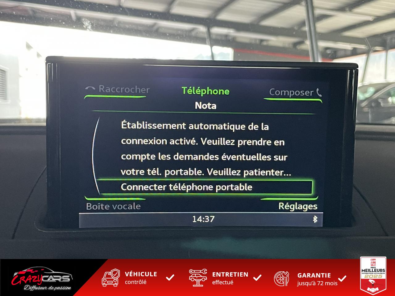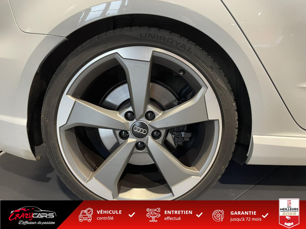 Accoudoir central avant coulissant en longueur, avec vide-poches relevable et inclinaison réglableAdvanced Key : système d'autorisation d'accès et de démarrage main libreAudi Drive Select : différents réglages du véhicule à travers trois modesAudi parking system plus : signal acoustique et visuel d'aide au stationnement avant et arrière par pictogrammes sur l'écranAudi Sound System avec 10 haut-parleursClimatisation automatique Confort avec réglage asservi à la position du soleil, réglage de température gauche/droite séparéEssuie-glace arrière avec déclenchement automatique en marche arrièreFixation pour sièges enfants ISOFIX et Top Tether pour les places arrière extérieuresFrein de stationnement electromécaniqueLève-vitres à l'avant et à l'arrière, électriques, avec protection antipincement, ouverture/fermeture par le verrouillage centralisé, fonction ouverture/fermeture par impulsionLunette arrière dégivrante, avec minuterie; chauffage supplémentaire de l'extrémité inférieure de l'essuie-glace arrièreMMI GPS plus avec données de navigationPack EclairagePréparation pour téléphone portable (Bluetooth), commande sur volant multifonction, mains libres et audiostreamingQuattro : transmission intégrale permanenteRégulateur de vitesse : maintient constante la vitesse souhaitée à partir d'environ 30 km/h dans la mesure où la puissance du moteur ou le frein moteur le permettentRétroviseur intérieur électrochromeRétroviseurs extérieurs style aluminium mat avec rappels de clignotant à diodes, asphérique côté conducteur, convexe côté passager avant, dégivrants et escamotables électriquementS tronic : boîte séquentielle 7 vitesses à double embrayageSeuils de portes avec inserts en aluminium et emblème RS 3Sièges Sport à l'avant en cuir Nappa / Velvet (au niveau des épaules) avec estampillage RS 3 sur le dossier des sièges avantSorties d'échappement RS, visibles et doubles, 2 sorties ovales chromées à gauche et à droiteSystème de freinage avec antiblocage (ABS) et répartiteur électronique de freinage (EBV)Système de ventilation et chauffage 4 diffuseurs d'air rondsVerrouillage centralisé avec télécommande à fréquence radio intégrée à la clé du véhicule et code modifiableVolant réglable en hauteur et en profondeurVolant Sport 3 branches multifonction en cuir badgé RS avec méplat et surpiqûres contrastées (avec palettes de changement de vitesse style aluminium)