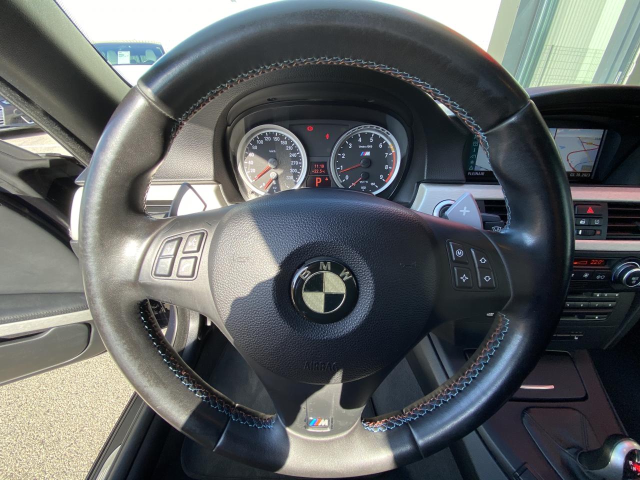 Accès ConfortCoussinets de bielles à jour entretien suivi okAllumage automatique des projecteurs et détecteur de pluieAppuis-tête arrièreBouton de démarrage “Start/Stop”Ceintures de sécurité à enrouleur automatique à l'avant avec prétensionneur et limiteur de tension de la ceintureCiel de pavillon "Anthrazit" BMW IndividualClimatisation automatique avec aérateurs à l'arrière (avec recyclage automatique de l'air, capteur de buée et d'ensoleillement et touche pour la chaleur résiduelle)Contrôle Dynamique de la stabilité DSC + avec fonctionnalités étendues, y compris ABS et assistant de freinageContrôle dynamique du freinage (DBC)Feux de stop dynamiquesFixation ISOFIX à l'arrièreFreins à disques composites ventilés avant et arrière, perforésGarnissage cuir Novillo (avec technologie SunReflective (réflexion solaire))Lave-projecteursLigne d'échappement, à double flux, avec doubles sorties d'échappement chroméesM DrivePeinture unieProjecteurs bi-Xénon avec réglage automatique de la portée des projecteurs et quatre anneaux lumineux (éclairage diurne et feux de stationnement)Rappels de clignotant sur les ailes, avec logo M3 intégréRégulateur de vitesseRétroviseur intérieur automatique jour/nuitRétroviseurs extérieurs M dans la teinte de la carrosserieSeuils de portes siglés BMW MSièges avant électriques à mémoires conducteurSièges avant MSystème d'aide au stationnement PDC, à l'arrièreSystème de navigation Professional avec écran couleur de 8,8 pouces, guidage par flèches et cartes 3D, lecteur DVD audio compatible MP3, « Controller » avec touches d'accès direct aux fonctions iDrive, disque dur pour données cartographiques et ficToit rigide rétractable, en trois partiesTrain roulant MVerrouillage/déverrouillage centralisé avec sécurité anti-démarrage EWSVitres électriques, à commandes à impulsionVolant M gainé cuir avec touches multifonctions