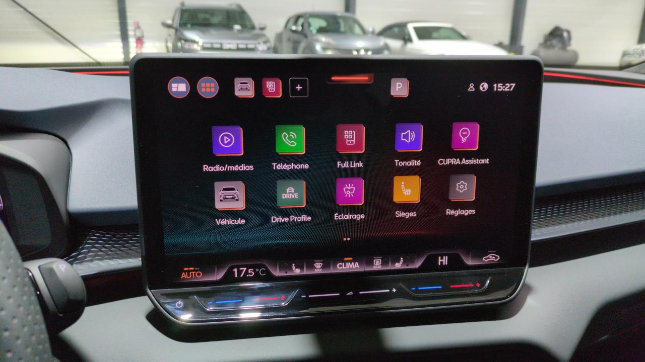 25" simple9" et touches de commandes tactiles rétro- éclairéesAbsAccès et démarrage mains-libresAccoudoir central avAide au maintien dans la voie (lane assist)Aide au stationnement av/arAirbags latérauxAlarme antivolAvec palettes de changement de rapportAvec signature lumineuse tri-led et cérémonie de bienvenueBandeau ar ''infinite light'' intégrant le logo cupra lumineuxBanquette ar coulissante 2/3 - 1/3Boîte de vitesse automate sequentiel à 7 vitessesCaméra de reculCapteur de pluie et de luminositéChauffantCiel de pavillon noirClimatisation automatique tri-zone "climatronic"Connectivité 4x usb-c et bluetoothConnectivity box avec chargeur à inductionContrôle de la traction (tcs)Design intérieur deep ocean (sièges baquets tep + textile bleu acier) - logos cupra estampés sur les appuie-têtes - planche de bord bleu acier texturée avec aérateurs cuivrés - contre-portes en tep noir texturé - ciel de pavillon noir - sièges conducteur et passager avec réglage manuel en hauteur etDétection de fatigue et somnolenceDigital cockpit 10Direction dynamiqueDossiers ar rabattables 2/3 - 1/3Eclairage de bienvenue avec projection du logo cupra au solEscFixations isofix avec top-tether à l'arFront assist avec détection des piétons et cyclistesFull link sans fil ( android auto + apple carplay)Garantie 1 an supplémentaire (2+1) ou 90 000 kmHayon électrique mains-libres ''virtual pedal''Jantes alliage 19" spectrum usinéesPeinture métallisée noir minuitPré-installation pour attelageProjecteurs anti-brouillard triangulaires avec éclairage d'intersection et éclairage d'accompagnementProjecteurs full led avec signature lumineusetri-ledRadio numérique dabRails de toit noirReconnaissance des panneaux de signalisation (sign assist)Régulateur de vitesse adaptatif accRétroviseur intérieur électrochromeRideaux et centralSeuils de porte cupra rétro-éclairésSièges av chauffantsSystème audio à 9 hp avec contrôle vocalSystème d'info-divertissement avec écran tactile hd 12Système de contrôle de la pression des pneusVitres ar surteintéesVitres électriques avVolant supersports cupra en cuir avec boutons satellites