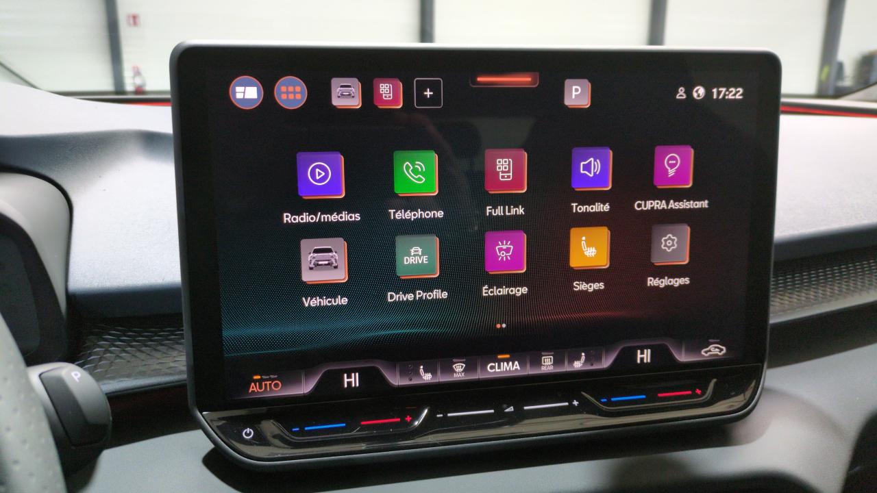 25" simple9" et touches de commandes tactiles rétro- éclairéesAbsAccès et démarrage mains-libresAccoudoir central avAide au maintien dans la voie (lane assist)Aide au stationnement av/arAirbags latérauxAlarme antivolAvec palettes de changement de rapportAvec signature lumineuse tri-led et cérémonie de bienvenueBandeau ar ''infinite light'' intégrant le logo cupra lumineuxBanquette ar coulissante 2/3 - 1/3Boîte de vitesse automate sequentiel à 7 vitessesCaméra de reculCapteur de pluie et de luminositéChauffantCiel de pavillon noirClimatisation automatique tri-zone "climatronic"Connectivité 4x usb-c et bluetoothConnectivity box avec chargeur à inductionContrôle de la traction (tcs)Design intérieur deep ocean (sièges baquets tep + textile bleu acier) - logos cupra estampés sur les appuie-têtes - planche de bord bleu acier texturée avec aérateurs cuivrés - contre-portes en tep noir texturé - ciel de pavillon noir - sièges conducteur et passager avec réglage manuel en hauteur etDétection de fatigue et somnolenceDigital cockpit 10Direction dynamiqueDossiers ar rabattables 2/3 - 1/3Eclairage de bienvenue avec projection du logo cupra au solEscFixations isofix avec top-tether à l'arFront assist avec détection des piétons et cyclistesFull link sans fil ( android auto + apple carplay)Garantie 1 an supplémentaire (2+1) ou 90 000 kmHayon électrique mains-libres ''virtual pedal''Jantes alliage 19" spectrum usinéesPeinture vernie bleu fjordProjecteurs anti-brouillard triangulaires avec éclairage d'intersection et éclairage d'accompagnementProjecteurs full led avec signature lumineusetri-ledRadio numérique dabRails de toit noirReconnaissance des panneaux de signalisation (sign assist)Régulateur de vitesse adaptatif accRétroviseur intérieur électrochromeRideaux et centralSeuils de porte cupra rétro-éclairésSièges av chauffantsSystème audio à 9 hp avec contrôle vocalSystème d'info-divertissement avec écran tactile hd 12Système de contrôle de la pression des pneusVitres ar surteintéesVitres électriques avVolant supersports cupra en cuir avec boutons satellites