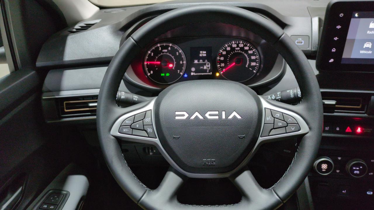 2 usb)3 appuis-têtes ar6 hpAide au parking av-arAirbag frontal conducteur et passagerAirbag frontal passager désactivableAirbag latéral av : thorax + rideauAlerte franchissement de ligne et assistant maintien dans la voieAllumage des feux et essuie-glace automatiquesAssistance au freinage d'urgence + allumage des warningsBanquette ar avec dossier rabattable en portefeuille 1/3 -2/3Barres de toit modulablesBoîte de vitesse manuelleCaméra de reculCarte mains libresClimatisation automatiqueCondamnation centralisée des portesCondamnation des ouvrants en roulantCustode et lunette ar surteintéesDétection de pression des pneusDeux-rorues et intersection)Direction assistéeEclairage du coffreEclairage plafonnier arEspFeux anti brouillardFeux ar avec signature lumineuse yFeux de jour à ledFiltre à particulesFrein de parking électriqueJantes alliage 16'' mahalia diamantée noir avec cabochon brun cuivréKit de gonflageLève-vitre conducteur électrique impulsionnelLève-vitres ar électriquesMode écoNavigationOrdinateur de bordPack confort+ : détecteur d'angle mort - aide au parking av/ar - frein de parking électrique - console semi-haute + rangement fermé avec accoudoir + siège conducteur réglable en hauteurPack navigation : media nav (écran 8''Peinture métallisée gris schistePortes arPrise accessoire en rang 3Rappel de bouclage de ceinturesReconnaissance des panneaux de signalisation avec alerte de survitesseRégulateur de vitesseRéplication smartphoneRétroviseur intérieur jour/nuitRétroviseurs extérieurs réglables électriquement + dégivrantsSellerie spécifique extreme avec surpiqûres brun cuivréSiège conducteur réglable en hauteur + accoudoir avSièges av chauffantsSignature lumineuse dacia en y à ledStripping extremeSystème anti-blocage des roues (abs)Système de contrôle de traction (tcs)Système de fixation isofixSystème de freinage d'urgence avancé (pietonSystème de surveillance de l'attention du conducteurVitresVolant réglable en hauteur et en profondeurVolant soft feel tep