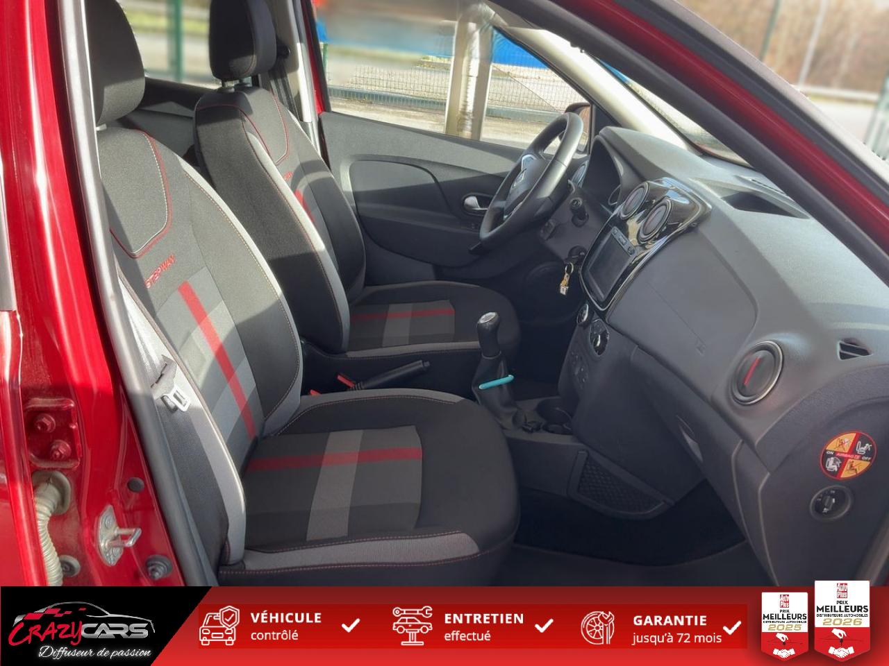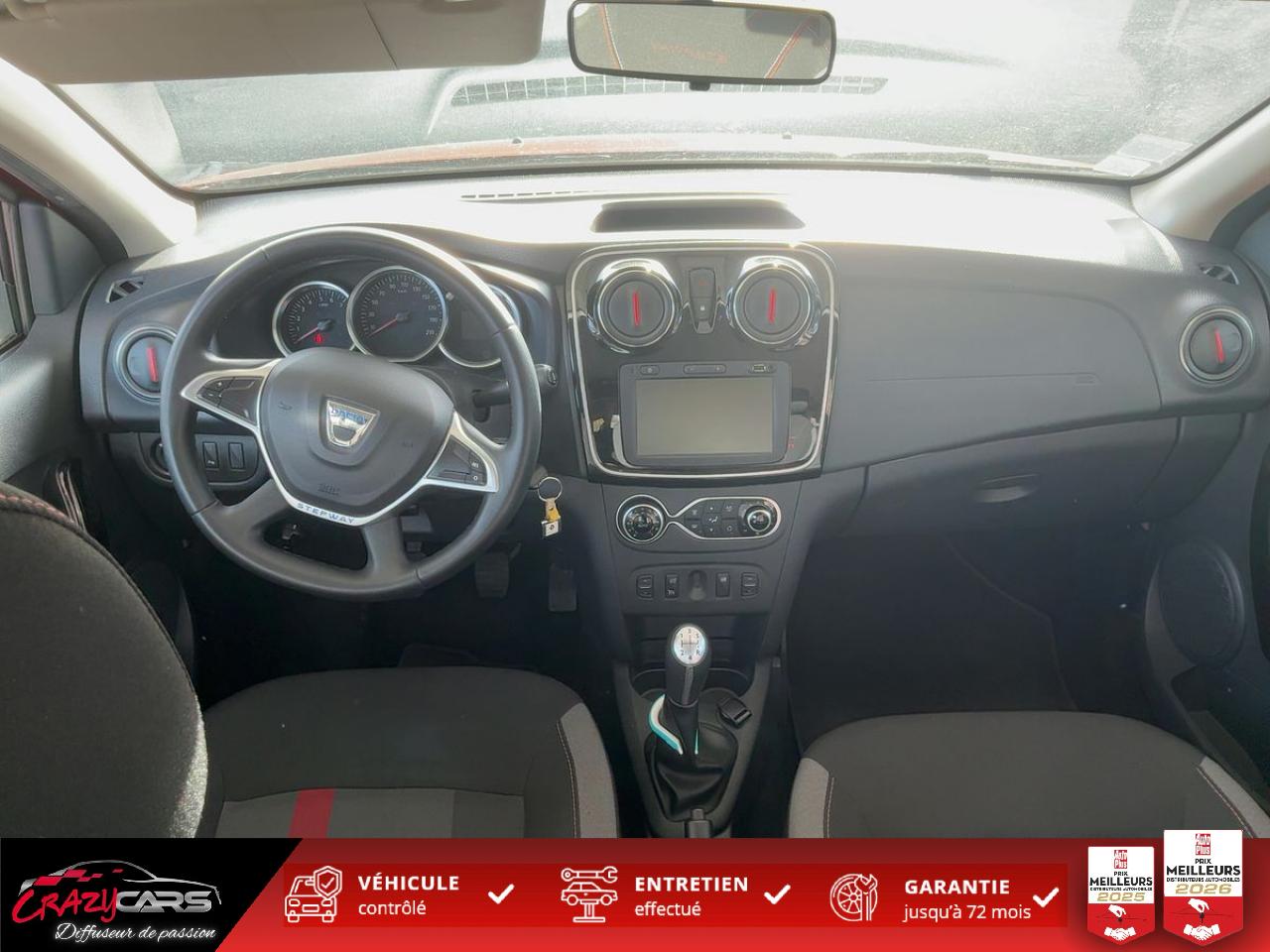 ABS avec aide au freinage d'urgenceCalandre Stepway avec chromeCartographie FranceCompte-toursCondamnation centralisée des ouvrants à télécommandeLève-vitres avant électriques, à impulsion côté conducteurLunette arrière dégivrante avec essuie-glaceMedia Nav Evolution : écran tactile 7” , navigation, radio, prises jack et USB, audiostreaming & téléphonie Bluetooth avec commandes au volant, haut-parleursOrdinateur de bordProjecteurs antibrouillardRadar de reculRégulateur et limiteur de vitesseSellerie spécifique StepwaySiège conducteur réglable en hauteurSystème de fixation Isofix pour siège enfant aux places latérales arrièreSystème de surveillance de pression des pneusSystème Stop & StartVignette de levier de vitesses Chrome SatinéVolant réglable en hauteurVolant Soft Feel Noir Titane et Chrome Satin
