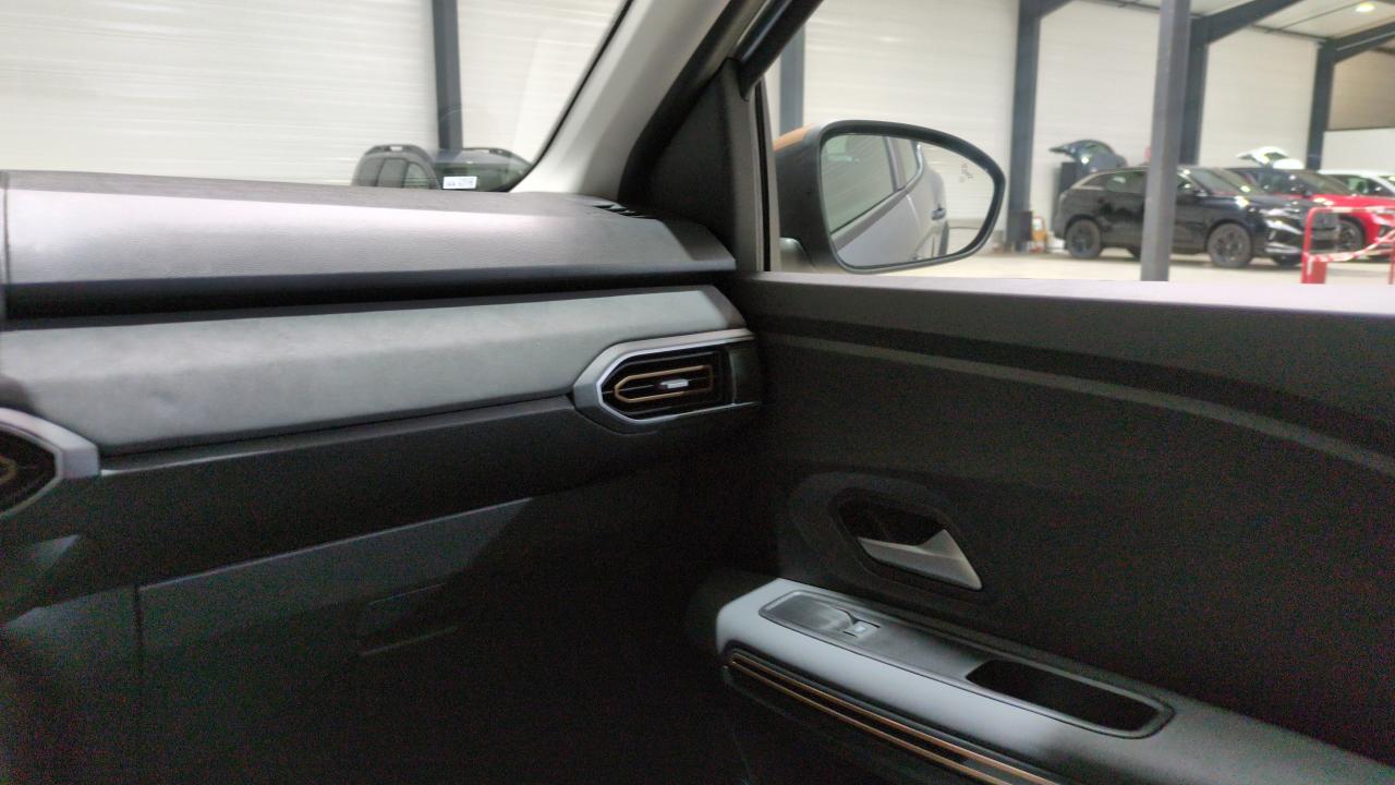 3 appuis-têtes ar 5'' et compteurs analogiques Airbag frontal conducteur et passager Airbag latéral av : thorax + rideau Alerte franchissement de ligne et assistant maintien dans la voie Allumage des feux et essuie-glace automatiques Antenne requin Assistance au freinage d'urgence + allumage des warnings Banquette ar rabattable 1/3-2/3 Barres de toit modulables Boîte de vitesse manuelle 6Caméra de recul Carte mains libres Climatisation automatique Condamnation centralisée des portes Condamnation des ouvrants en roulant Conducteur impulsionnel Détection de pression des pneus Deux-rorues et intersection) Direction assistéeEclairage du coffre Esp+asrExtended grip Feux ar avec signature lumineuse y Feux de jour à led Fonction éco-mode Jantes alluminium 16'' mahalia diamantée noir avec cabochon brun cuivré Lève-vitres ar électriques Lève-vitres av électriquesMedia display ecran tactile 8'' sans navigation + radio + réplication smartphone usb + 4 haut-parleurs audiostreaming bluetooth + satellite de commandes au volant + 1 prise usb-a + 1 prise usb-cPack confort : détecteur d'angle mort + aide au parking av-ar + frein de parking électrique + console haute + rangement fermé avec accoudoir + 1 prise usb-c ar + 1 prise 12v arPeinture métallisée gris schistePlancher de coffre double niveau Prédisposition ethylotest Projecteurs antibrouillard Rappel de bouclage de ceintures Reconnaissance des panneaux de signalisation avec alerte de survitesse Régulateur et limiteur de vitesse Rétroviseur intérieur jour/nuit Rétroviseurs extérieurs brun cuivré Rétroviseurs extérieurs électriques et dégivrantsRoue de secours Sellerie spécifique extreme avec surpiqûres brun cuivré Siège conducteur réglable en hauteur Signature lumineuse dacia en y à led Stripping extreme Système anti-blocage des roues (abs) Système de fixation isofix Système de freinage d'urgence avancé (pietonSystème de surveillance de l'attention du conducteur Tableau de bord avec écran numérique 3Volant réglable en hauteur et en profondeur Volant soft feel tepÂ