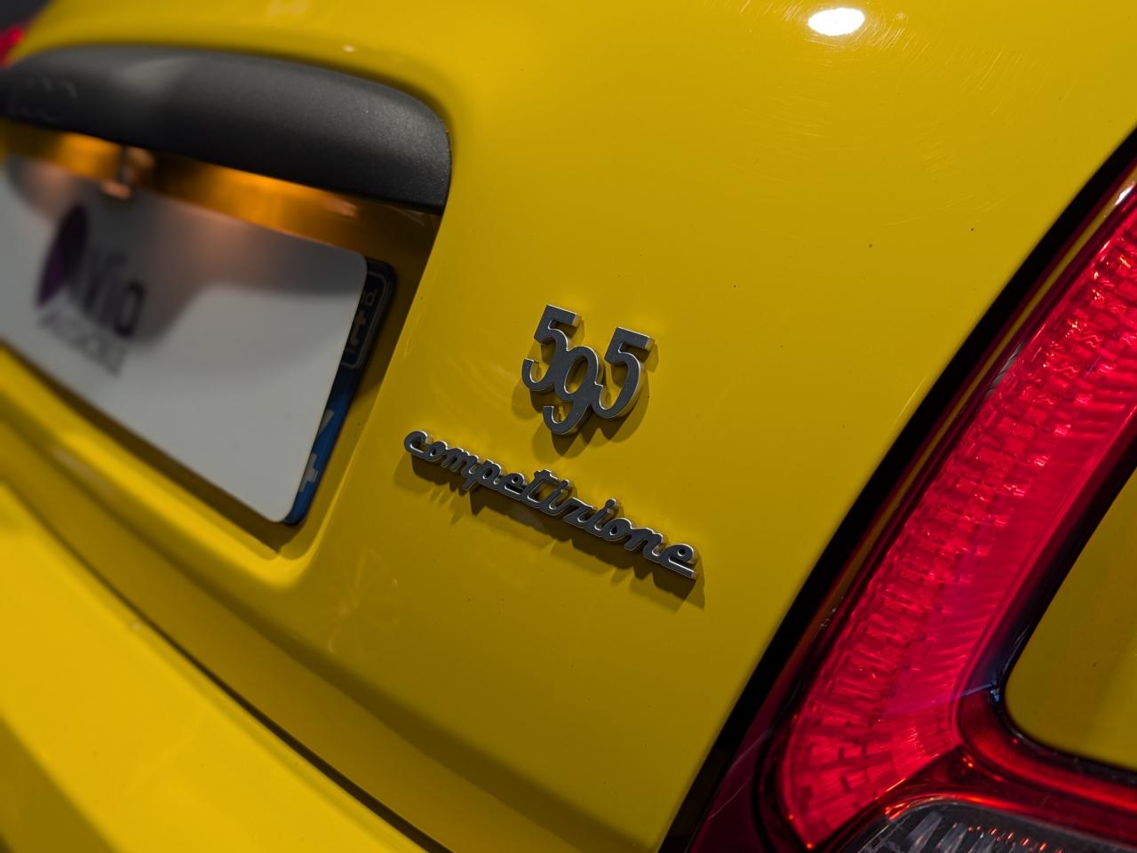 Banquette AR rabattable 50/50Becquet arrièreClimatisation automatiqueContrôle de pression des pneus ( TPMS )Ecran couleur TFT 7'' multifonctionsFeux de jour à LEDHabillage instrumentation en AlcantaraKit Esthétique Abarth: stickers latérauxKit Turismo/Competizione monté en usine - Pommeau de levier de vitesse alu, pédialier métal, seuils de porte avec inscription Abarth, kit de tapis avec insert eco cuir et fixations aluLève-vitres électriquesLogo 595 Competizione à l’arrièreManomètre de mesure de pression du turboPhares antibrouillard avant intégrésPoignées de portes, poignée de coffre, baguette entourant logo AV, coques de rétroviseurs, inserts boucliers AV et AR gris matRétroviseurs extérieurs électriques et dégivrantsUconnect 7'' HD LIVE (écran tactile 7'' HD, bluetooth, audio streaming, commande vocale, port USB et AUX, commandes au volant, services LIVE)Volant cuir/alcantara avec point milieu et branches finition carbone
