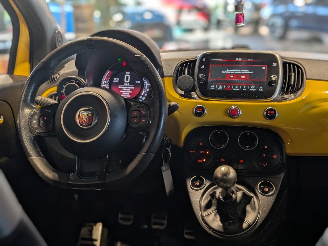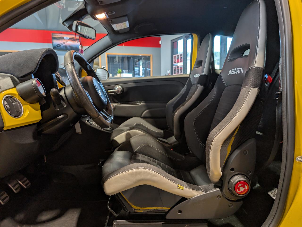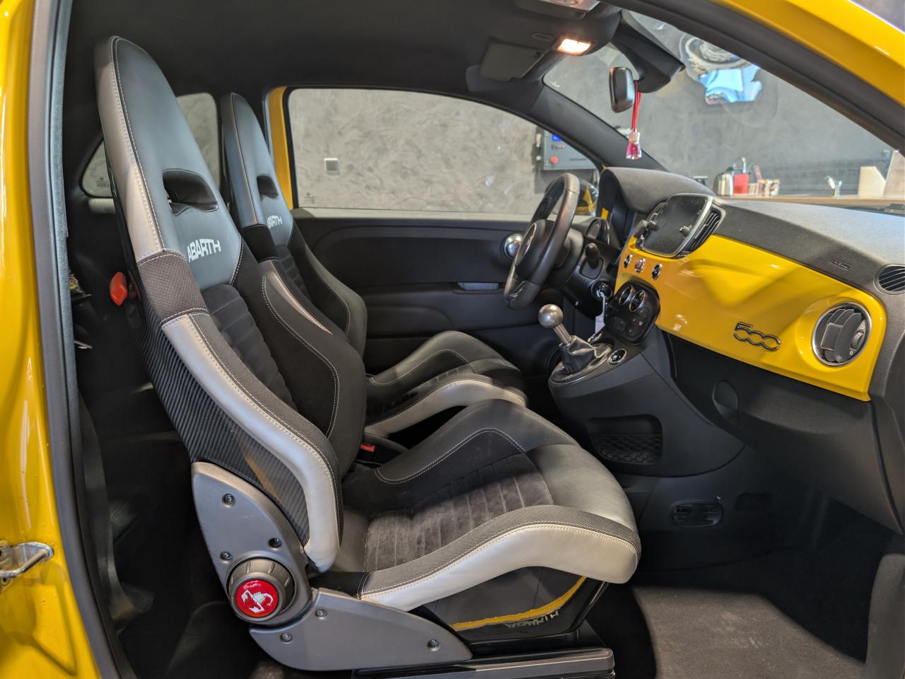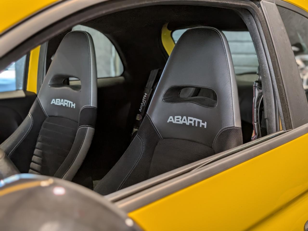 Etriers de freins Brembo jaunes Jantes alliage 17'' SuperSport Finition Noir Mat Kit Esthétique Abarth : stickers latéraux + coques... Pack Performance Peinture pastel extra-série Jaune Modena Projecteurs Xénon avec lave-phares Radar de recul Sièges baquet (conducteur+passager) Sabelt en cuir/alcantara...