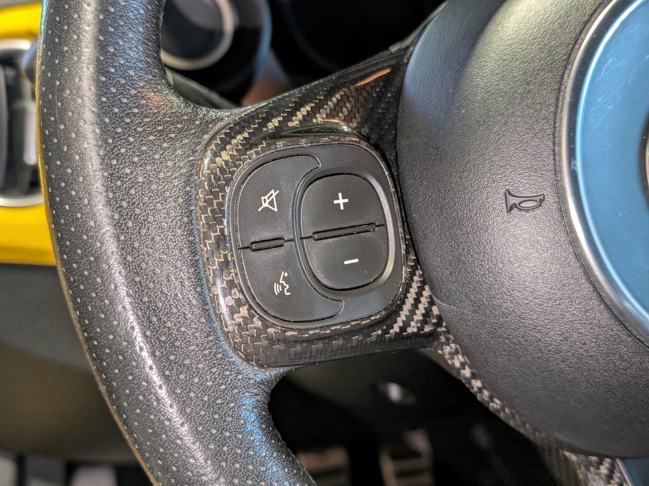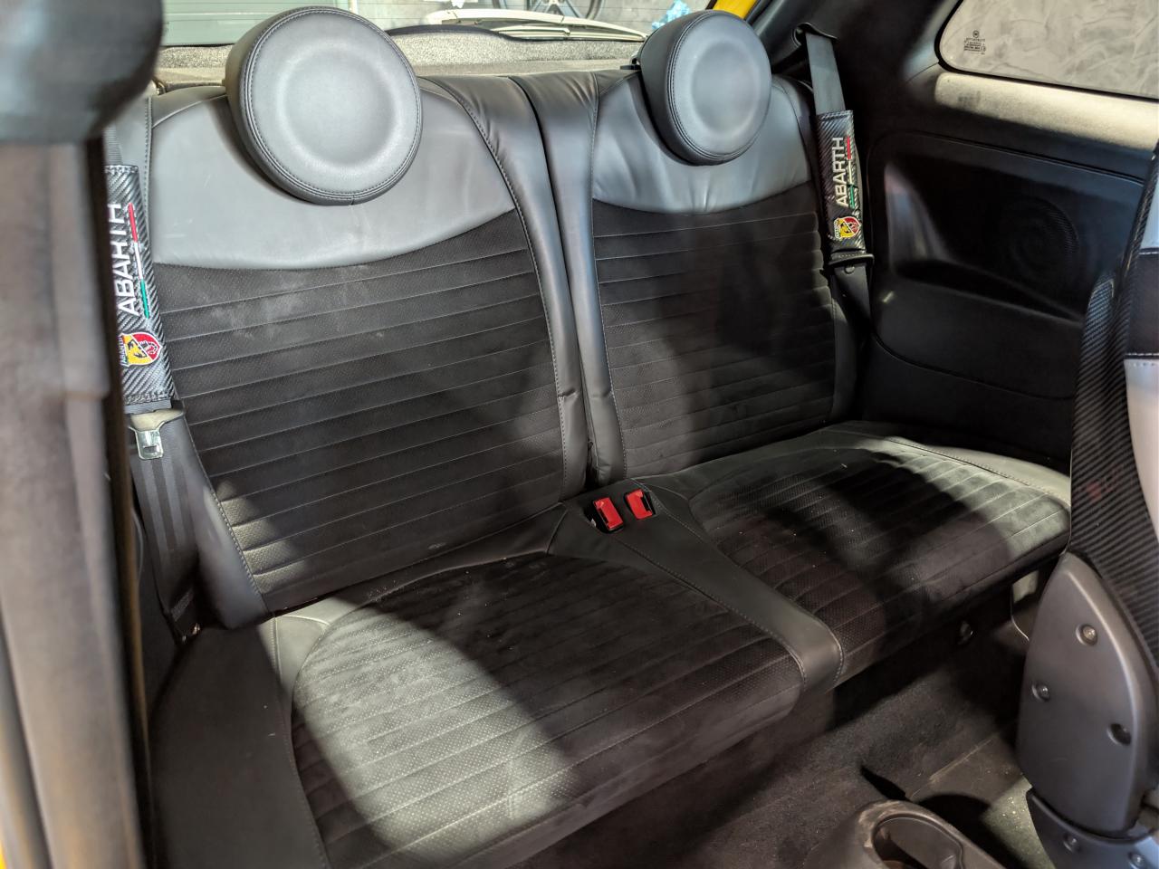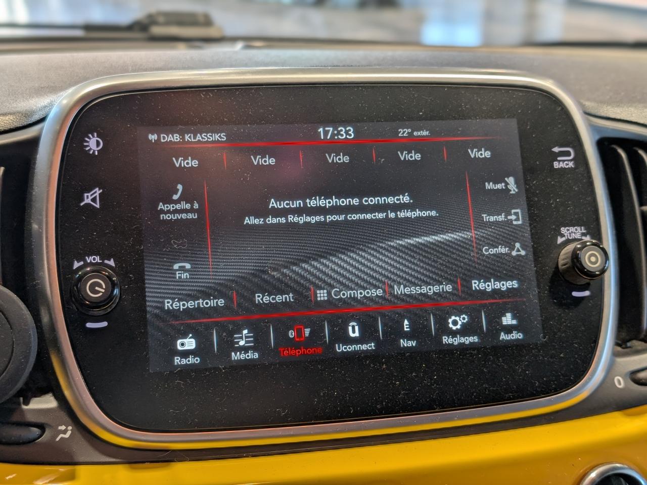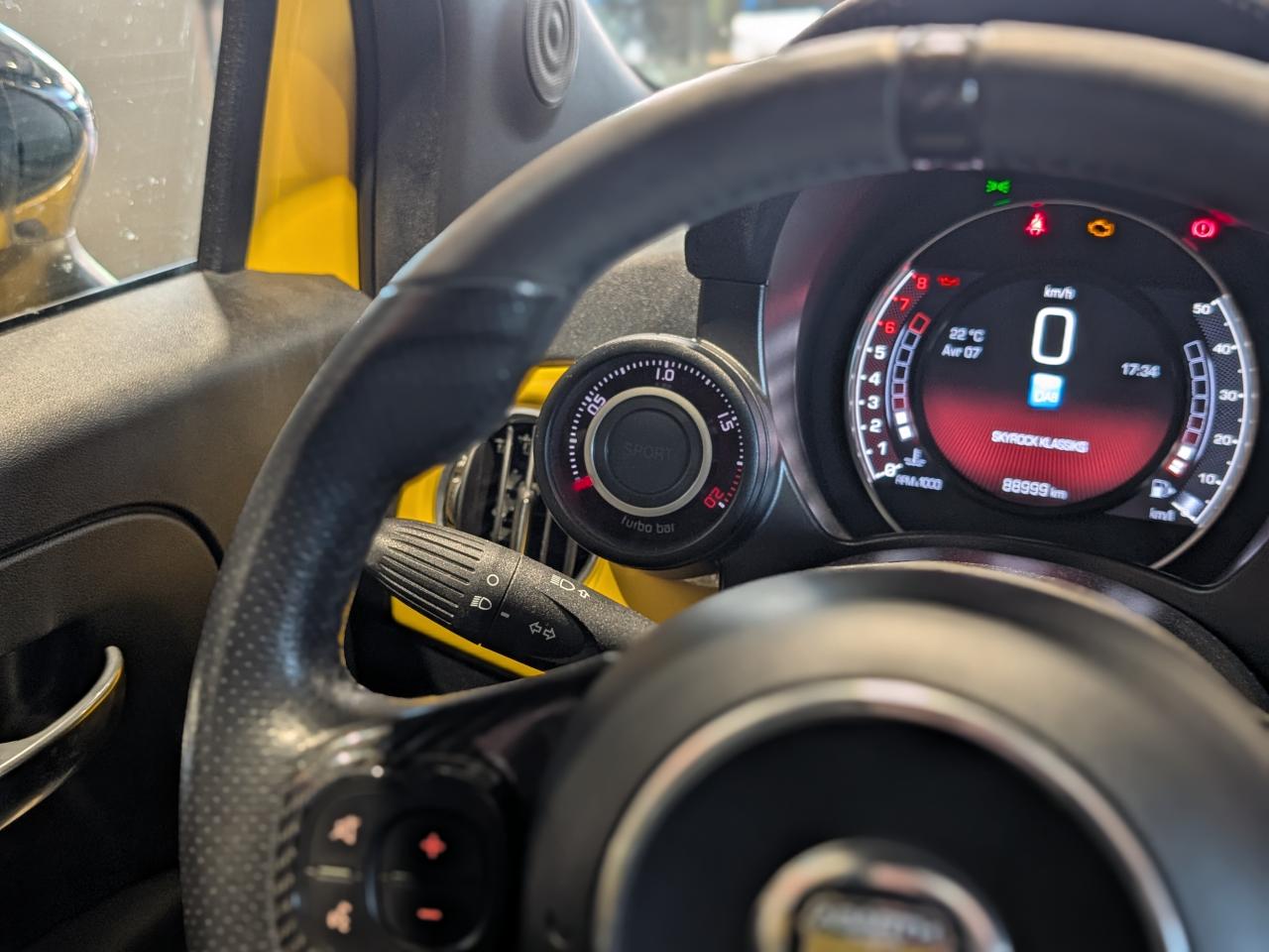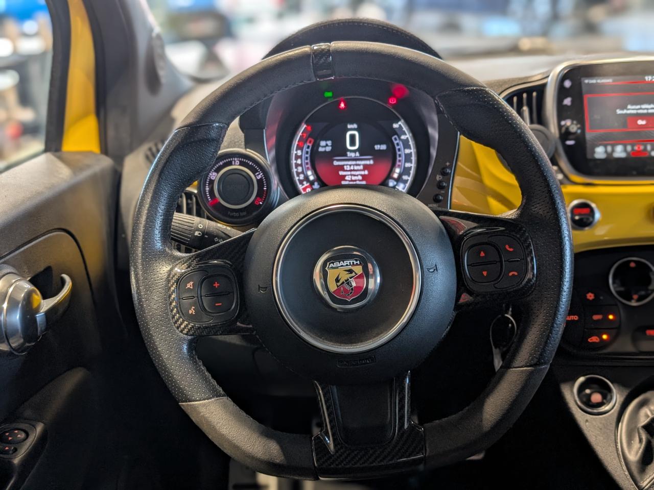 Etriers de freins Brembo jaunes Jantes alliage 17'' SuperSport Finition Noir Mat Kit Esthétique Abarth : stickers latéraux + coques... Pack Performance Peinture pastel extra-série Jaune Modena Projecteurs Xénon avec lave-phares Radar de recul Sièges baquet (conducteur+passager) Sabelt en cuir/alcantara...