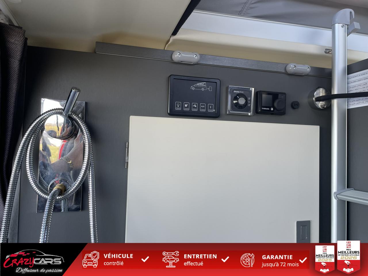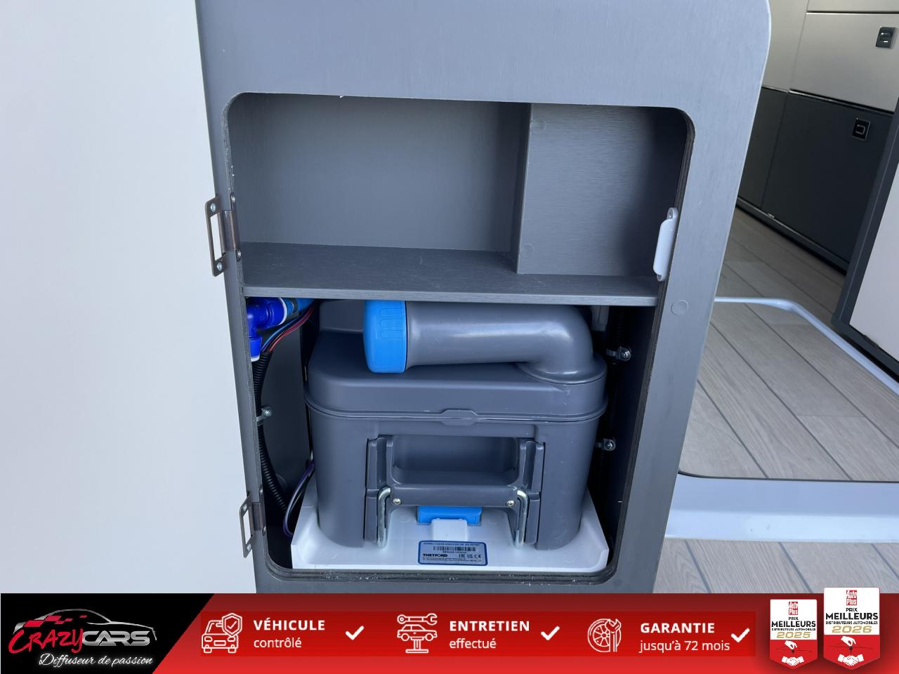 - Équipement d’autonomie et de confort inclus : panneau solaire 120 W, kit outdoor (table extérieure), chauffe-eau gaz pour douche et chauffage Webasto pour le maintien du confort en basse saison.