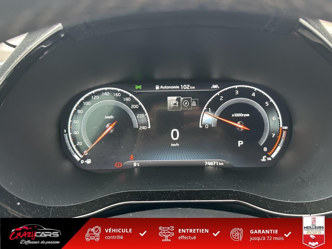 Allumage automatique des projecteursAssistance au démarrage en côteAssistance au freinage d'urgenceCaméra de recul avec lignes de guidage activesCapteur de pluieCapteurs de parking arrièreClimatisation automatique bi-zoneCombiné d'instrumentation 100% digital 12.3''Direction à assistance électrique asservie à la vitesseEcran tactile couleur 10.25" avec compatibilité Android Auto et Apple CarPlayFeux arrière à LEDFeux de jour à LEDFrein de parking électriqueKit de dépannage en cas de crevaisonLève-vitres électriques avant et arrière, séquentiels et antipincementOrdinateur de bordOuverture et démarrage sans clé “Smart Key”Palettes de changement de rapports au volantPhares avant Full LEDRadio MP3, 6 haut-parleurs (dont 2 tweeters), avec commandes au volantRégulateur et limiteur de vitesseRétroviseurs extérieurs rabattables électriquement avec répétiteur de clignotant LEDSélecteur de conduite DRIVE MODE (Normal ou Sport)Sellerie cuir de synthèse/tissu noirSystème actif d'aide au stationnementSystème de navigation avec cartographie Europe et services connectés TomTom LIVE offerts pendant 7 ansSystème de surveillance de la vigilance du conducteurSystème de téléphonie mains-libres Bluetooth avec reconnaissance vocale et fonction streaming audio (selon compatibilité du téléphone)Système Isofix sur sièges arrière latérauxToit vitré panoramique ouvrant/entrebâillant électriquement, avec rideau occultant électriqueVitres latérales et lunette arrière surteintéesVolant gainé cuir