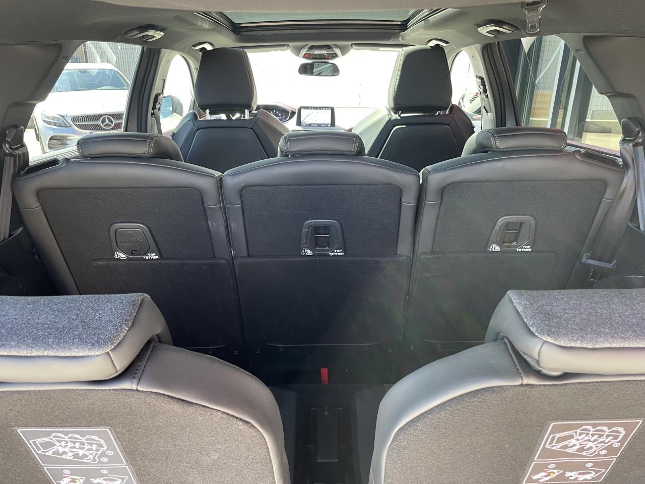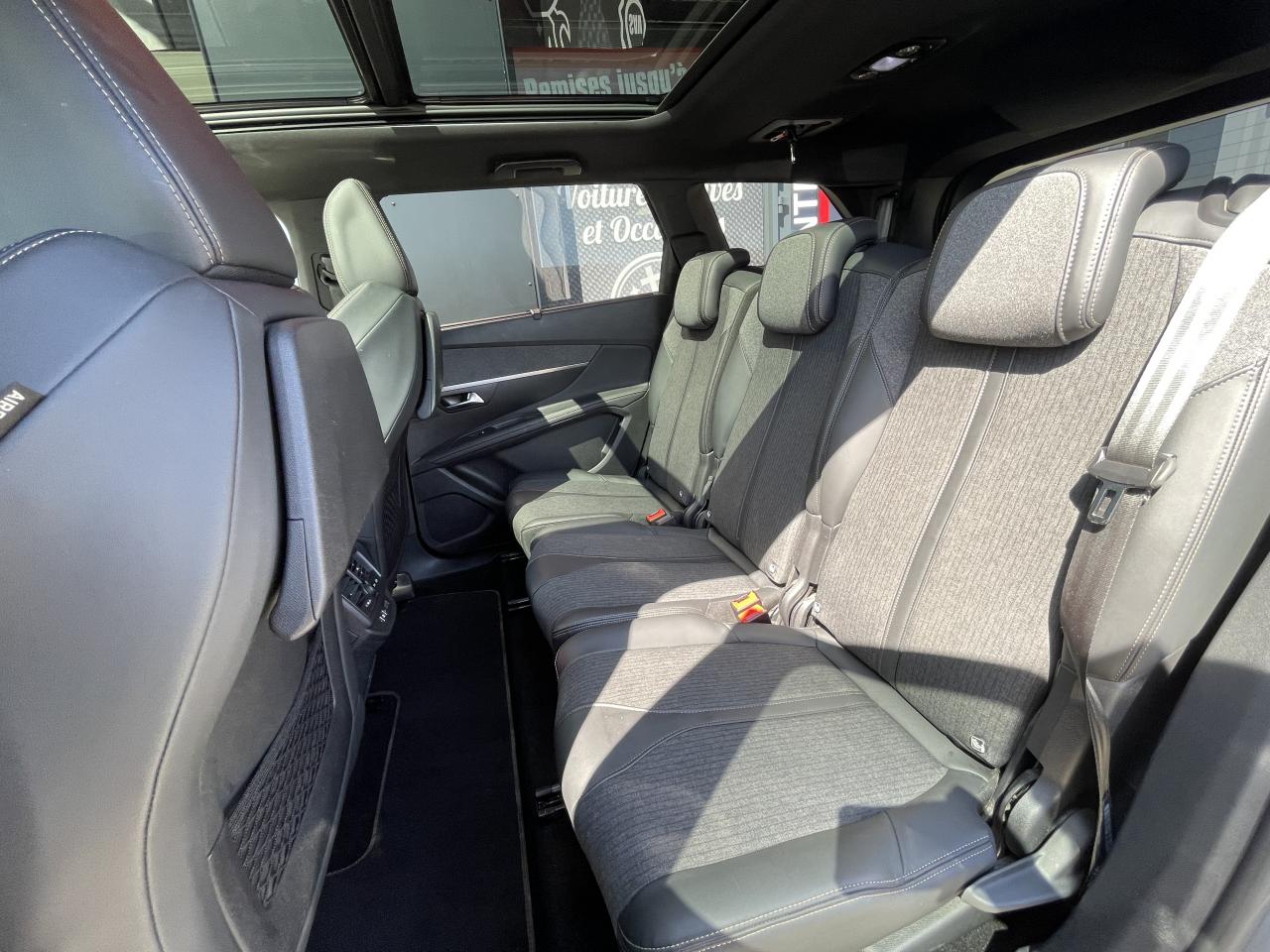 3 Sièges arrière en rang 2 (indépendants, coulissants, inclinables et escamotables dans le plancher)ABS (Antiblocage de roues)Accoudoir central avant à ouverture papillon, avec compartiment de rangement éclairé et réfrigérableAide au Freinage d'Urgence (AFU)Aide sonore et graphique au stationnement arrièreAir conditionné automatique bi-zone avec aérateurs aux places arrièreAirbags frontaux et latéraux conducteur et passager à déclenchement adaptatif pour les Airbag frontaux (Airbag passager désactivable par clé)Airbags rideaux de tête aux places avant et arrièreAppuis-tête à sécurité optimisée réglables en hauteur sur les sièges conducteur et passager avant ainsi que sur les places arrièresCalandre avec jonc périphérique et ailettes chromésCeintures avant à 3 points, réglables en hauteur, avec prétensionneurs et limiteurs d'effortCeintures de sécurité trois points à enrouleur (x2) au troisième rangCeintures de sécurité trois points à enrouleur (x3) au deuxième rang, avec prétensionneurs et limiteurs d'effort aux places latéralesCommande de verrouillage à distance (deux plips)Contrôle dynamique de stabilité CDS avec antipatinage électronique ASRDécors intérieurs (baguettes de planche de bord et panneaux de portes, enjoliveur de console) chromésDétection de sous-gonflage indirecteDeux sièges escamotables et extractibles pour les passagers du troisième rangDirection assistée électrique, avec colonne de direction réglable en hauteur et profondeur (mécanique)Essuie-vitre arrière à activation automatique au passage en marche arrièreFilets aumônières au dos des sièges avantFixations ISOFIX sur les 3 sièges de la 2ème rangéeFonction Mirror ScreenFrein de stationnement électrique avec aide au démarrage en penteInserts d'ailes avant chromésLève-vitres électriques avant et arrière, séquentiels et antipincementLunette arrière chauffante avec antennes sérigraphiéesPack EnfantsPack VisibilitéPassages de roues rapportés noirsPeugeot Connect : Navigation 3D connectée avec reconnaissance vocale + PEUGEOT Connect SOS & AssistancePeugeot i-Cockpit combiné tête haute numérique reconfigurable, écran tactile capacitif 8" et volant compact multi-fonctionsPlafonnier avant avec spots de lecture (x2) et plafonniers à extinction temporisée aux deuxième et troisième rangsPoignées de maintien (x4) rétractables avec frein (crochets pour cintres aux places arrière)Porte-gobelets dans la console centrale avant (x2)Prise 12V (x3) : à l'avant, à l'arrière et dans le coffrePrise USBProjecteurs antibrouillard halogènes avec enjoliveurs chromésProjecteurs halogènes à l’avant avec feux diurnes à LED intégrés dans le bloc optiqueRégulateur et limiteur de vitesseRépartiteur électronique de freinage REFSécurité enfant électrique des vitres arrièreSellerie Tissu 'Meco'Siège conducteur réglable en hauteurSiège passager avant réglable en hauteur manuellementToggle Switches' chromés (touches 'piano' d'activation des fonctions de l'écran tactile)Verrouillage automatique de tous les ouvrants en roulantVitres latérales arrière et lunette arrière surteintéesVolant en croûte de cuir