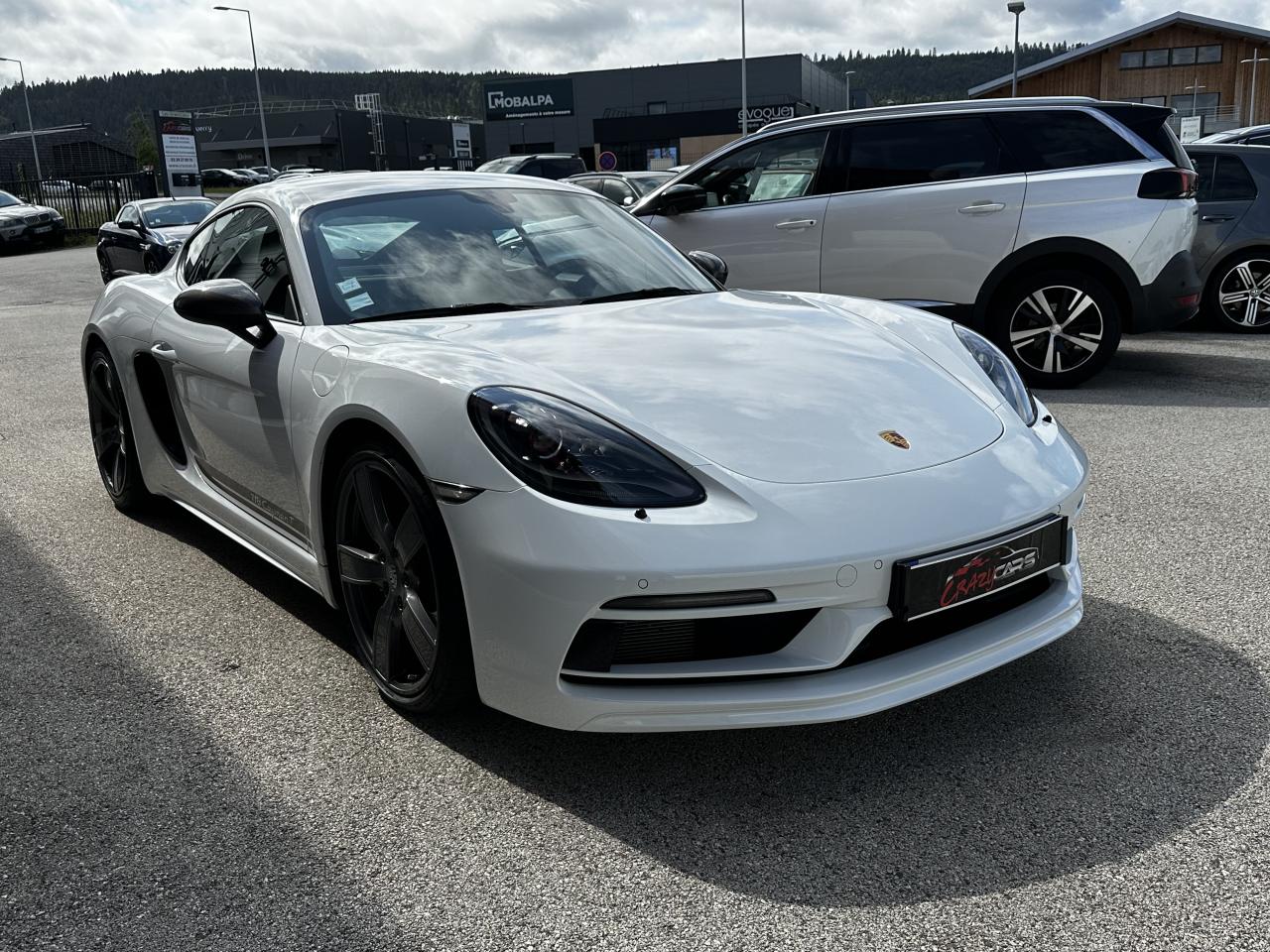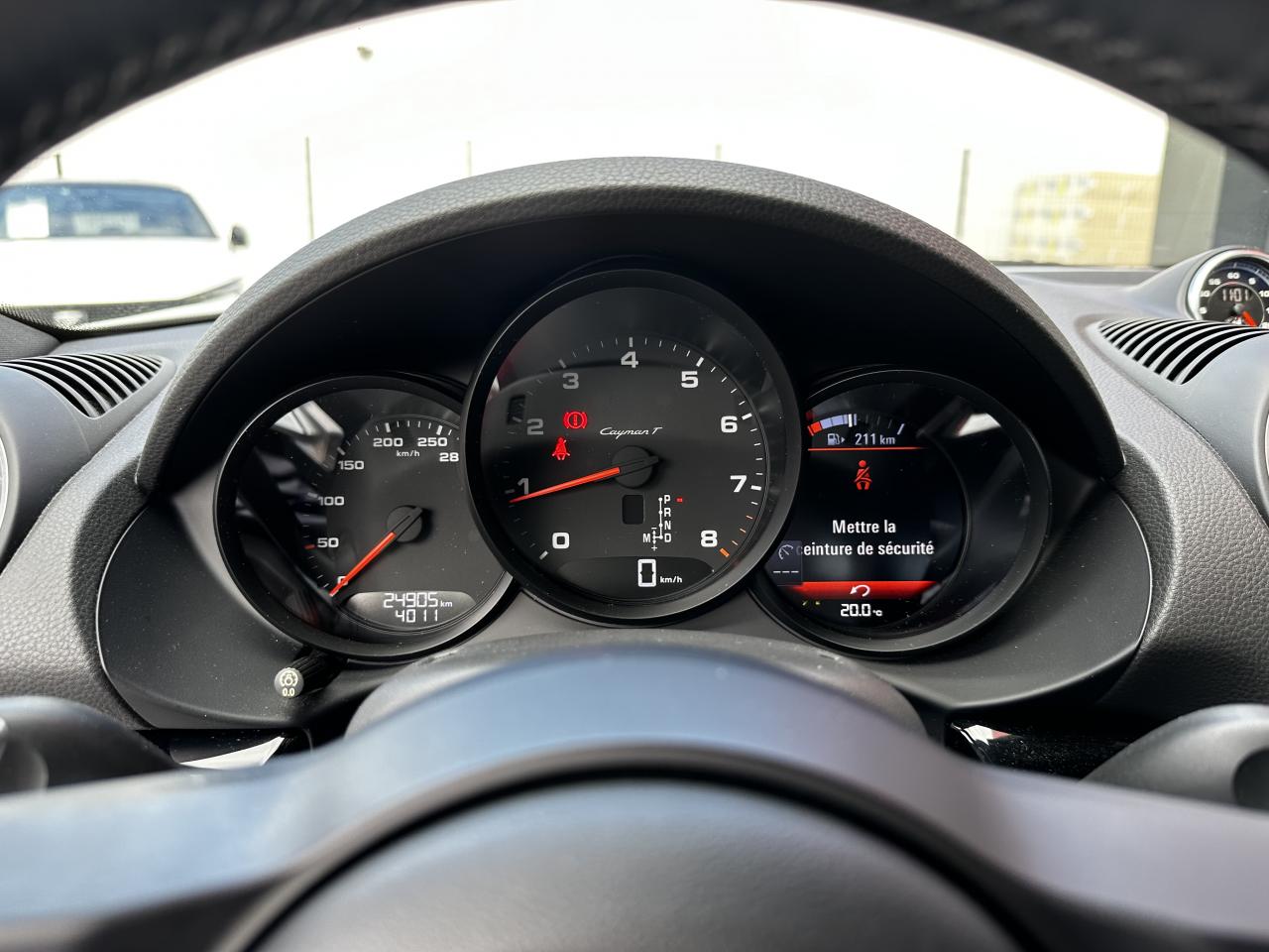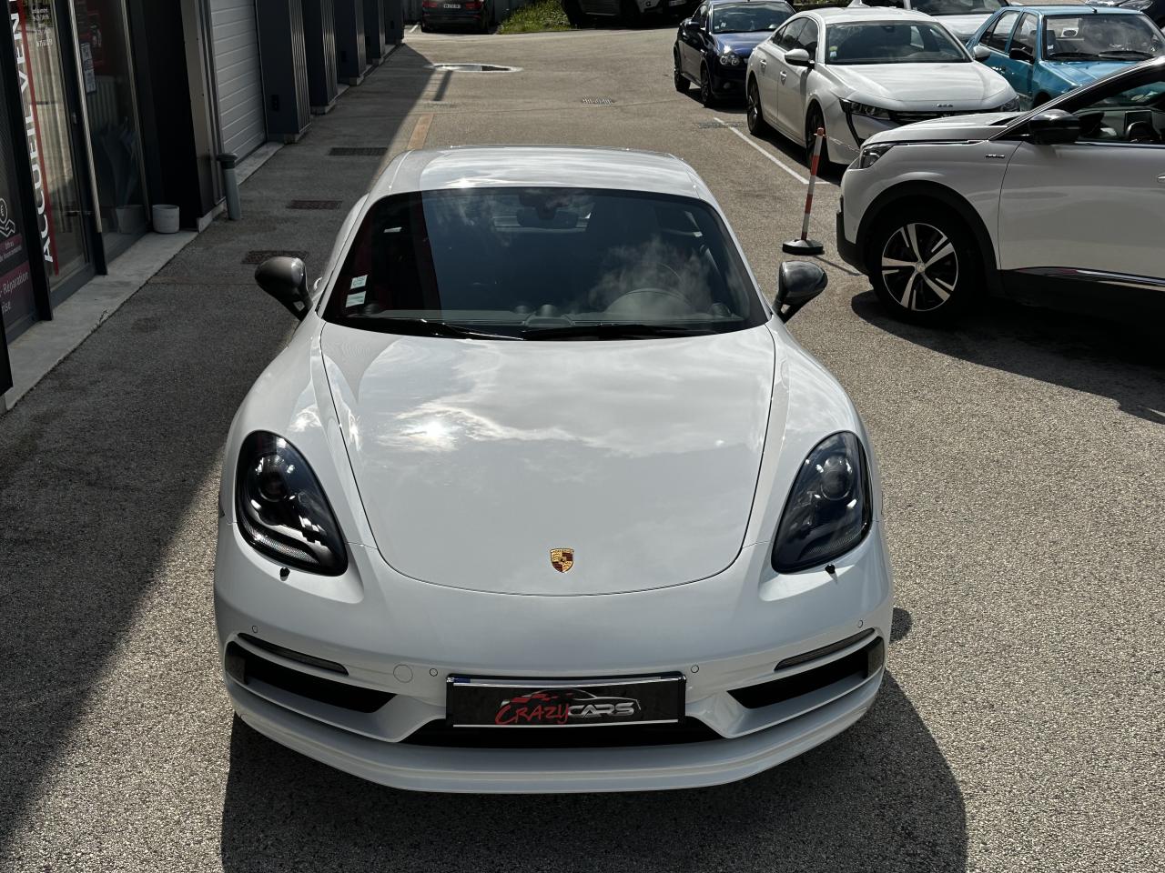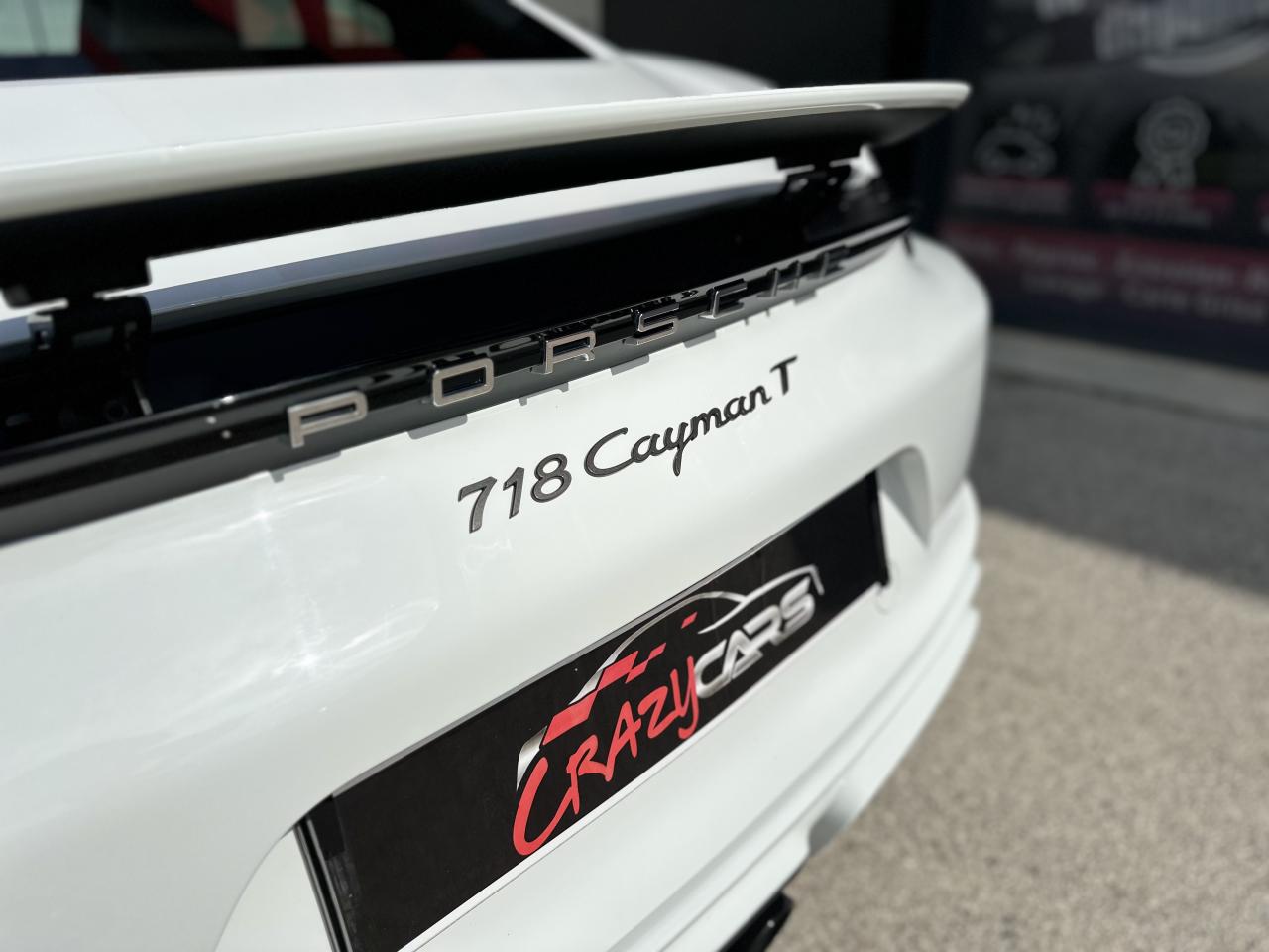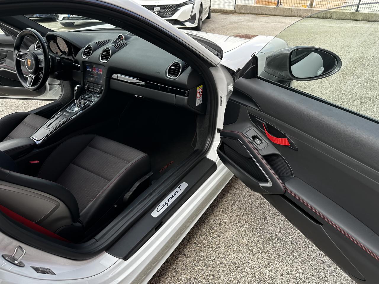 1 turbocompresseur, 1 échangeur thermiqueAccoudoirs de portes et couvercle du coffre de rangement de la console centrale avec revêtement en Cuir lisseAffichage des performances sur le PCMAffichage numérique : vitesse, rapport engagé, kilométrages total et journalierAileron arrière à déploiement automatiqueAirbags grand volume pour le conducteur et le passagerAllumage automatique des feux en cas d'ouverture/fermeture du véhiculeApplication Porsche Track PrecisionBaguettes de seuil de porte avec logo Cayman TBaguettes décoratives du tableau de bord en Noir brillantBande centrale des sièges en Sport-Tex, bandes latérales des sièges avant et appuie-tête revêtus de CuirBloc moteur et culasse en aluminiumBloc optique supplémentaire à DEL dans le bouclier avant avec feux de position, clignotants et rappels de clignotant latérauxBoîte de vitesse Porsche Doppelkupplung (PDK)Bouclier avant avec entrées d'air intégréesCadrans du combiné d’instruments, compte-tours avec logo Cayman T en BlancCatalyseur à 3 voies et diagnostic embarqué dédié à la surveillance du système de dépollutionCiel de toit en tissu noirCoffre à l’avant et à l’arrièreCombiné d'instruments avec compte-tours central et écran couleur haute définition de 4,6 poucesConcept de véhicule deux places avec moteur centralConsole centrale montante avec un vide-poche ouvert et un autre ferméContrôle de pression des pneus ( TPMS )Coque de rétroviseurs extérieurs avec éléments peints en Gris QuartzCouronne de volant, levier de vitesses et insert de la poignée de porte avec revêtement en Cuir lisseCrochets porte-vêtement au dos des siègesDégivrage de la lunette arrièreDirection assistée électromécanique à démultiplication variable et impulsionDisques : ventilés et ajourés à l'avant et à l'arrière, 330 mm de diamètre à l'avant et 299 mm à l'arrière"Double débrayage dynamique lors du passage à la vitesse inférieure en mode SPORT et SPORT PLUSEcrous de roues antivolEssieu à jambes de force allégées à l’avant et à l’arrièreEssuie-glaces avec buse de lave-glace intégréeEtriers de freins noirsEtriers fixes monoblocs en aluminium à 4 pistons à l'avant et à l'arrièreFeux arrière à DEL avec feux stop intégrés 4 points et feux de reculFonction Stop-Start automatique et mode CroisièreFrein de parking électroniqueInjection directe d'essenceInscription décorative latérale « 718 Cayman T » en Gris QuartzInserts décoratifs de la console centrale en Noir brillantJantes "Carrera S" 20 poucesJantes en Gris Titane brillanteKit anticrevaison TIREFIT avec compresseur électriqueLève-vitre électrique avec fonction à impulsion haut/bas et abaissement automatique de la vitreLogo 718 brodé en Noir sur les appuie-têteLubrification intégrée à carter sec avec pompe à huile à débit piloté en fonction des besoinsMode SPORT PLUS avec réglage axé sur les performances pour le moteur, la boîte de vitesse et le châssisPack Audio PlusPack Sport ChronoPalettes de changement de rapportPhares bi-xénon avec éclairage jour à DELPorsche Side Impact Protection System (POSIP) comprenant une protection anti-encastrement latérale installée dans les portières, des airbags thorax logés dans les bandes latérales des sièges et des airbags de tête intégrés aux panneaux dePorsche Stability Management (PSM), ABS inclus, avec fonctions de freinage avancéesPorsche Torque Vectoring (PTV)Prise 12 V dans la console centralePrise de courant (12 V) dans le plancher côté passagerRangement dans la console centraleRefroidissement par eau avec module de gestion thermiqueRéglage manuel du volant en hauteur et en profondeurRétroviseur extérieur sur panneau de porte, chauffant, réglable électriquement, asphérique côté conducteurSangle d’ouverture des portes en NoirSélecteur de modes de conduite (Normal, Sport, Sport Plus et individual)Services Porsche Vehicle Tracking System (PVTS) permet l'accès aux services de commande liés au véhicule, à travers les services Porsche Car ConnectSièges sport Plus (2 réglages, électrique) avec coque des dossiers peinte en Gris ArgentSignature « PORSCHE » sur baguette décorative et désignation du modèle sur le bouclier arrière, en Argent brillantSpots de lecture, éclairage d’orientation et de démarreur à DEL, ainsi qu’éclairage du coffre et de la boîte à gantsStructure légère intelligente combinant l’aluminium et l’acierSuspension abaissée de 20mm avec PASMSystème antidémarrage avec verrouillage centralisé et télécommandeSystème d'alarmeSystème d’échappement Sport avec double sortie centrale en Acier spécial Noir (finition brillante)Technologie 4 soupapesTeinte Intérieur NoirTeintes extérieures unies : Blanc, Noir, Rouge Indien, Jaune Porsche RacingVarioCam Plus avec calage variable des arbres à cames et de la levée des soupapesVentilation avec commande de recyclage d’air et de dégivrageVitres athermiques teintées vertes