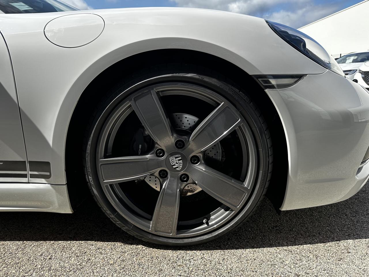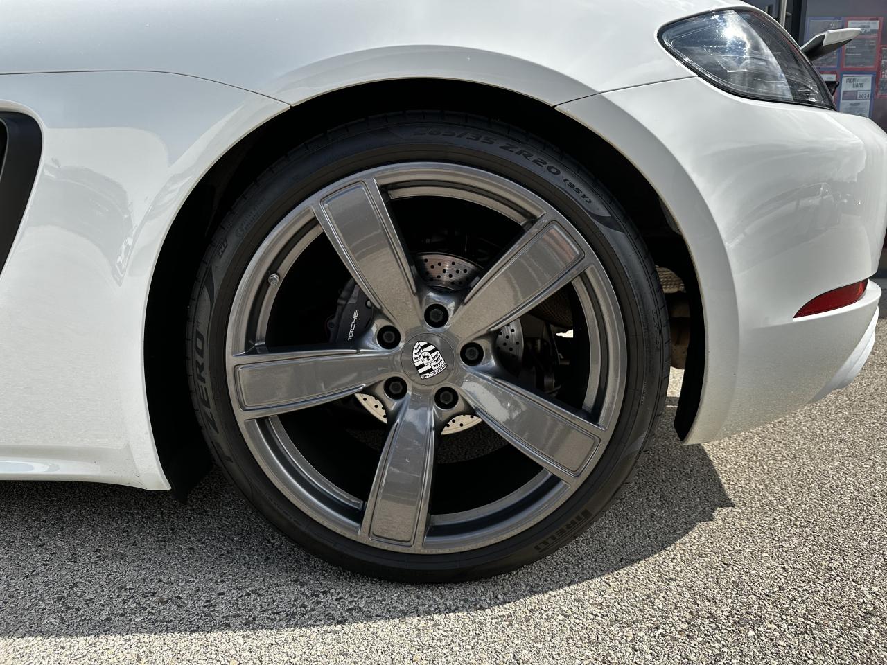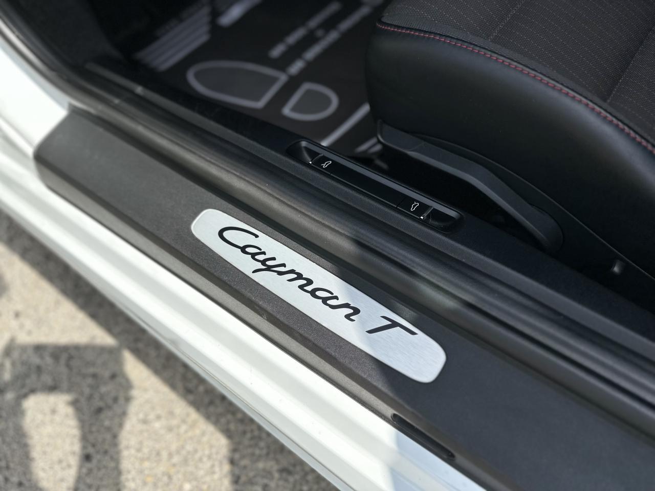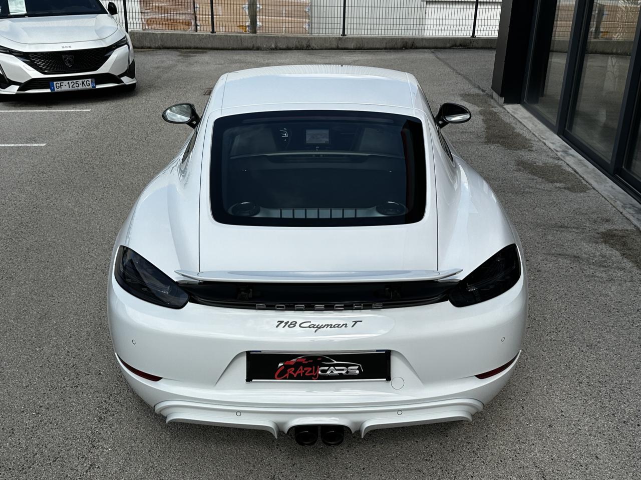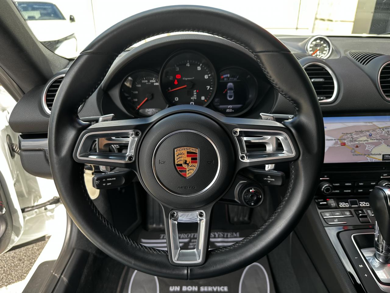 1 turbocompresseur, 1 échangeur thermiqueAccoudoirs de portes et couvercle du coffre de rangement de la console centrale avec revêtement en Cuir lisseAffichage des performances sur le PCMAffichage numérique : vitesse, rapport engagé, kilométrages total et journalierAileron arrière à déploiement automatiqueAirbags grand volume pour le conducteur et le passagerAllumage automatique des feux en cas d'ouverture/fermeture du véhiculeApplication Porsche Track PrecisionBaguettes de seuil de porte avec logo Cayman TBaguettes décoratives du tableau de bord en Noir brillantBande centrale des sièges en Sport-Tex, bandes latérales des sièges avant et appuie-tête revêtus de CuirBloc moteur et culasse en aluminiumBloc optique supplémentaire à DEL dans le bouclier avant avec feux de position, clignotants et rappels de clignotant latérauxBoîte de vitesse Porsche Doppelkupplung (PDK)Bouclier avant avec entrées d'air intégréesCadrans du combiné d’instruments, compte-tours avec logo Cayman T en BlancCatalyseur à 3 voies et diagnostic embarqué dédié à la surveillance du système de dépollutionCiel de toit en tissu noirCoffre à l’avant et à l’arrièreCombiné d'instruments avec compte-tours central et écran couleur haute définition de 4,6 poucesConcept de véhicule deux places avec moteur centralConsole centrale montante avec un vide-poche ouvert et un autre ferméContrôle de pression des pneus ( TPMS )Coque de rétroviseurs extérieurs avec éléments peints en Gris QuartzCouronne de volant, levier de vitesses et insert de la poignée de porte avec revêtement en Cuir lisseCrochets porte-vêtement au dos des siègesDégivrage de la lunette arrièreDirection assistée électromécanique à démultiplication variable et impulsionDisques : ventilés et ajourés à l'avant et à l'arrière, 330 mm de diamètre à l'avant et 299 mm à l'arrière"Double débrayage dynamique lors du passage à la vitesse inférieure en mode SPORT et SPORT PLUSEcrous de roues antivolEssieu à jambes de force allégées à l’avant et à l’arrièreEssuie-glaces avec buse de lave-glace intégréeEtriers de freins noirsEtriers fixes monoblocs en aluminium à 4 pistons à l'avant et à l'arrièreFeux arrière à DEL avec feux stop intégrés 4 points et feux de reculFonction Stop-Start automatique et mode CroisièreFrein de parking électroniqueInjection directe d'essenceInscription décorative latérale « 718 Cayman T » en Gris QuartzInserts décoratifs de la console centrale en Noir brillantJantes "Carrera S" 20 poucesJantes en Gris Titane brillanteKit anticrevaison TIREFIT avec compresseur électriqueLève-vitre électrique avec fonction à impulsion haut/bas et abaissement automatique de la vitreLogo 718 brodé en Noir sur les appuie-têteLubrification intégrée à carter sec avec pompe à huile à débit piloté en fonction des besoinsMode SPORT PLUS avec réglage axé sur les performances pour le moteur, la boîte de vitesse et le châssisPack Audio PlusPack Sport ChronoPalettes de changement de rapportPhares bi-xénon avec éclairage jour à DELPorsche Side Impact Protection System (POSIP) comprenant une protection anti-encastrement latérale installée dans les portières, des airbags thorax logés dans les bandes latérales des sièges et des airbags de tête intégrés aux panneaux dePorsche Stability Management (PSM), ABS inclus, avec fonctions de freinage avancéesPorsche Torque Vectoring (PTV)Prise 12 V dans la console centralePrise de courant (12 V) dans le plancher côté passagerRangement dans la console centraleRefroidissement par eau avec module de gestion thermiqueRéglage manuel du volant en hauteur et en profondeurRétroviseur extérieur sur panneau de porte, chauffant, réglable électriquement, asphérique côté conducteurSangle d’ouverture des portes en NoirSélecteur de modes de conduite (Normal, Sport, Sport Plus et individual)Services Porsche Vehicle Tracking System (PVTS) permet l'accès aux services de commande liés au véhicule, à travers les services Porsche Car ConnectSièges sport Plus (2 réglages, électrique) avec coque des dossiers peinte en Gris ArgentSignature « PORSCHE » sur baguette décorative et désignation du modèle sur le bouclier arrière, en Argent brillantSpots de lecture, éclairage d’orientation et de démarreur à DEL, ainsi qu’éclairage du coffre et de la boîte à gantsStructure légère intelligente combinant l’aluminium et l’acierSuspension abaissée de 20mm avec PASMSystème antidémarrage avec verrouillage centralisé et télécommandeSystème d'alarmeSystème d’échappement Sport avec double sortie centrale en Acier spécial Noir (finition brillante)Technologie 4 soupapesTeinte Intérieur NoirTeintes extérieures unies : Blanc, Noir, Rouge Indien, Jaune Porsche RacingVarioCam Plus avec calage variable des arbres à cames et de la levée des soupapesVentilation avec commande de recyclage d’air et de dégivrageVitres athermiques teintées vertes