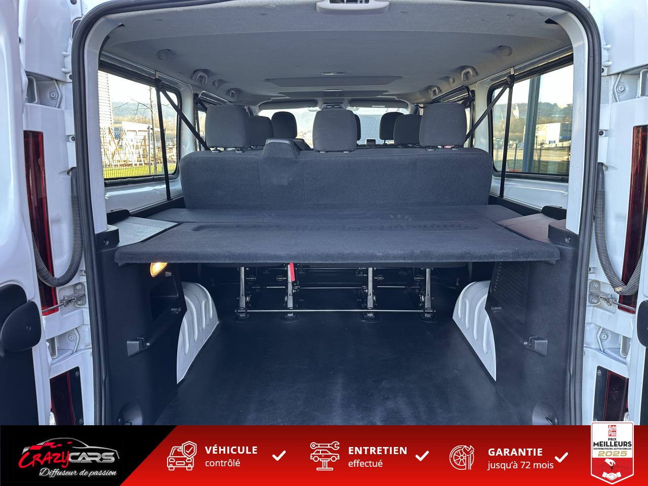 Vous êtes à la recherche du parfait mini bus pour vos trajets en famille ? Notre RENAULT TRAFIC de 2023 pourrait bien devenir votre allié ! Ses atouts ? La belle modularité de son aménagement intérieur, le confort de ses sièges et une position de conduite qui ne laissent personne indifférent. Les espaces de rangements de ce véhicule 9 places ne manquent pas.