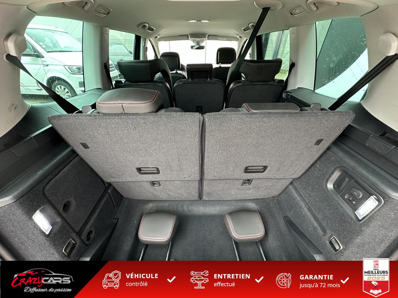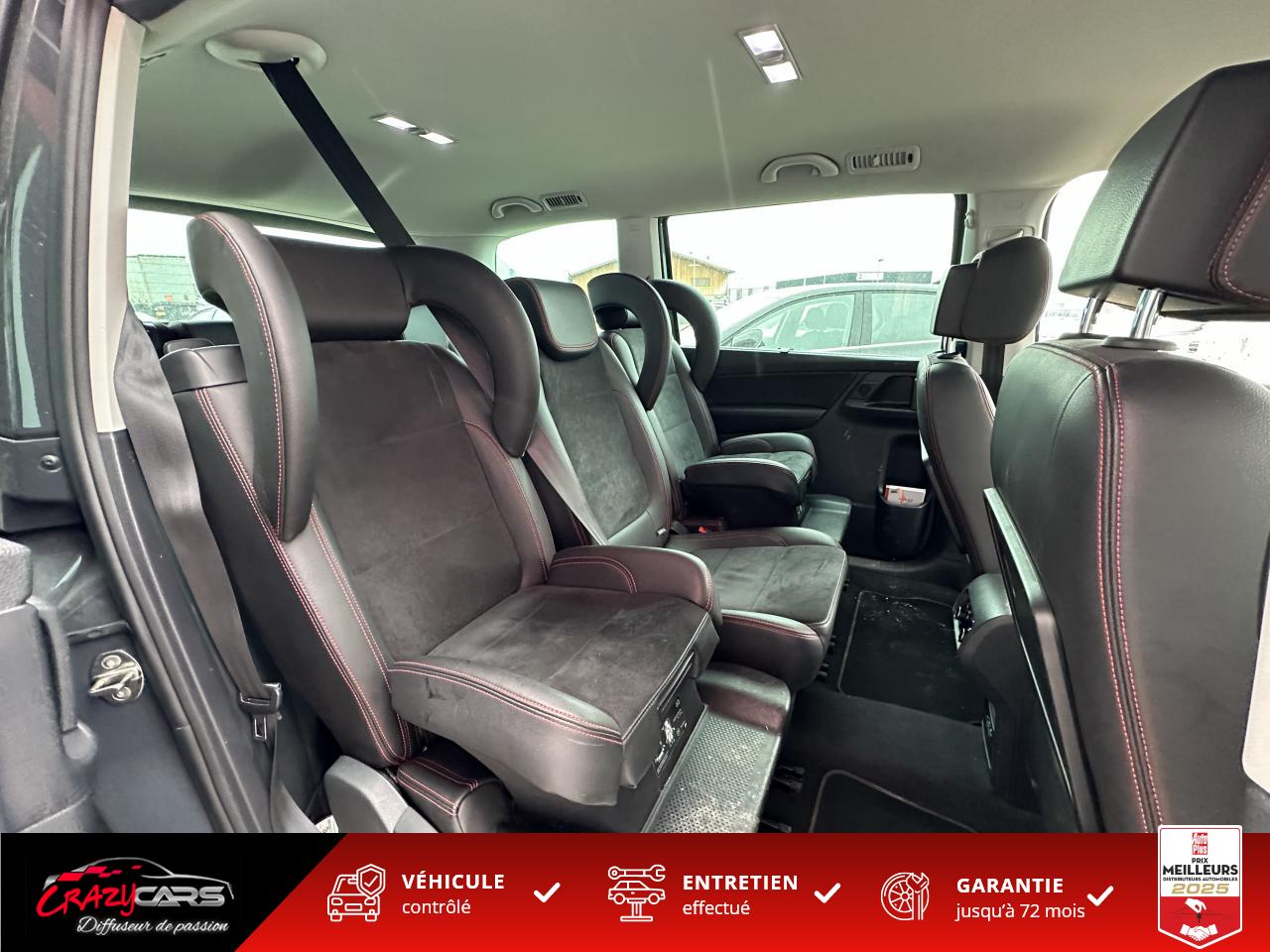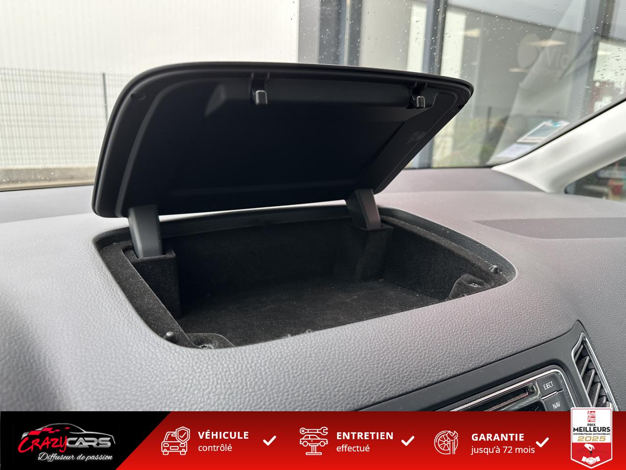 ABS électronique (système antiblocage des roues) avec EBV (répartiteur électronique de freinage), ESBS (correcteur électronique de freinage en courbe), EDS (blocage électronique de différentiel) , TCS (contrôle électronique de traction) dAccoudoir central avantAide au stationnement avant/arrièreAllumage automatique des projecteursCapteur de pluieESP (programme électronique de stabilité) avec EBA (Aide au Freinage d'Urgence) + DSR (Driver Steering Recommendation) avec mise en route automatique des feux de détresse en cas de freinage d'urgence + indicateur de chute de pression des pneus avec signal sonoreFrein à main électriqueFront Assist avec détection des piétonsFull Link (MirrorLink + Android Auto + Apple CarPlay)Lane Assist : caméra intelligente avec fonction anti-franchissement de ligneOrdinateur de bordPack 7 placesProjecteurs antibrouillardRégulateur de vitesse adaptatif (ACC)Rétroviseur intérieur électrochromeRétroviseurs extérieurs électriques et dégivrants avec répétiteur de clignotant à LEDSellerie Alcantara et similicuirSièges avant chauffantsStart / Stop (système de coupure automatique et de redémarrage automatique du moteur à l'arrêt)Système Bluetooth pour téléphone portableSystème de fixation ISOFIX sur les sièges arrièreSystème de navigation avec écran tactile 6,5’’, mise à jour cartographie 3 ans et caméra de reculVitres arrières surteintéesVitres avant et arrière électriques à impulsion avec système ant-ipincementVolant 3 branches, réglable en hauteur et en profondeurVolant Cuir multifonctions