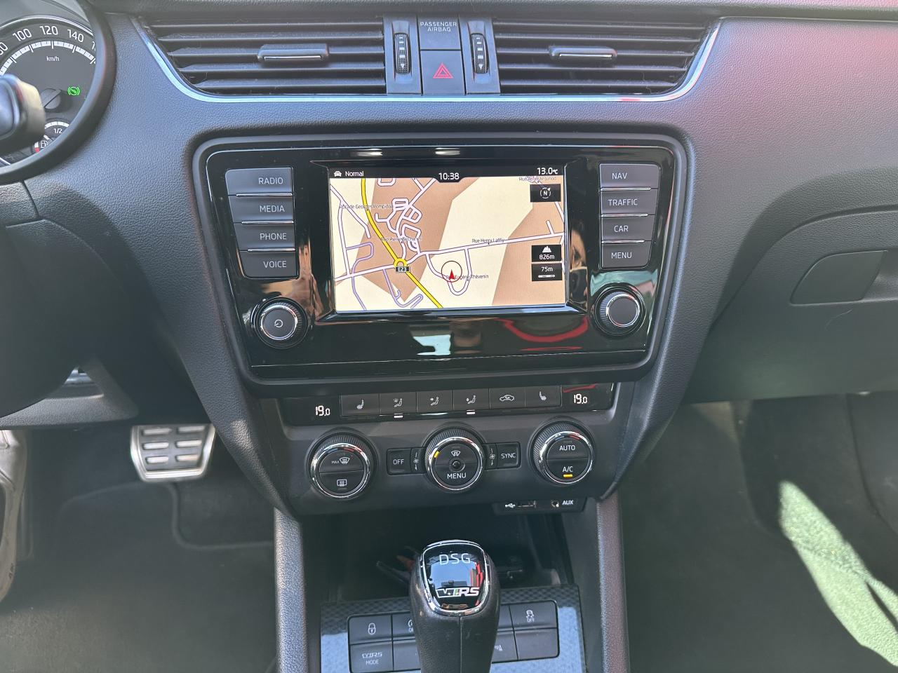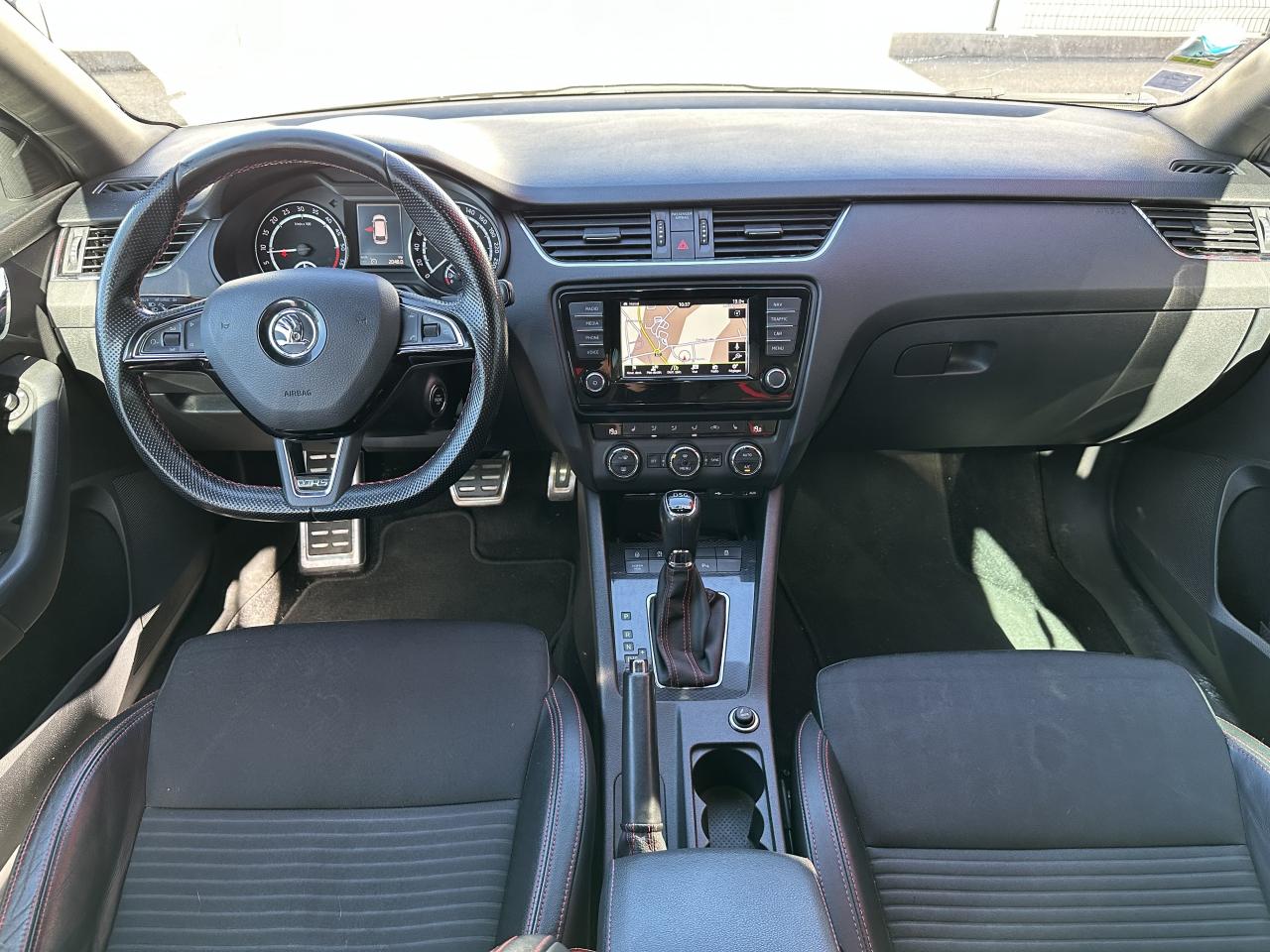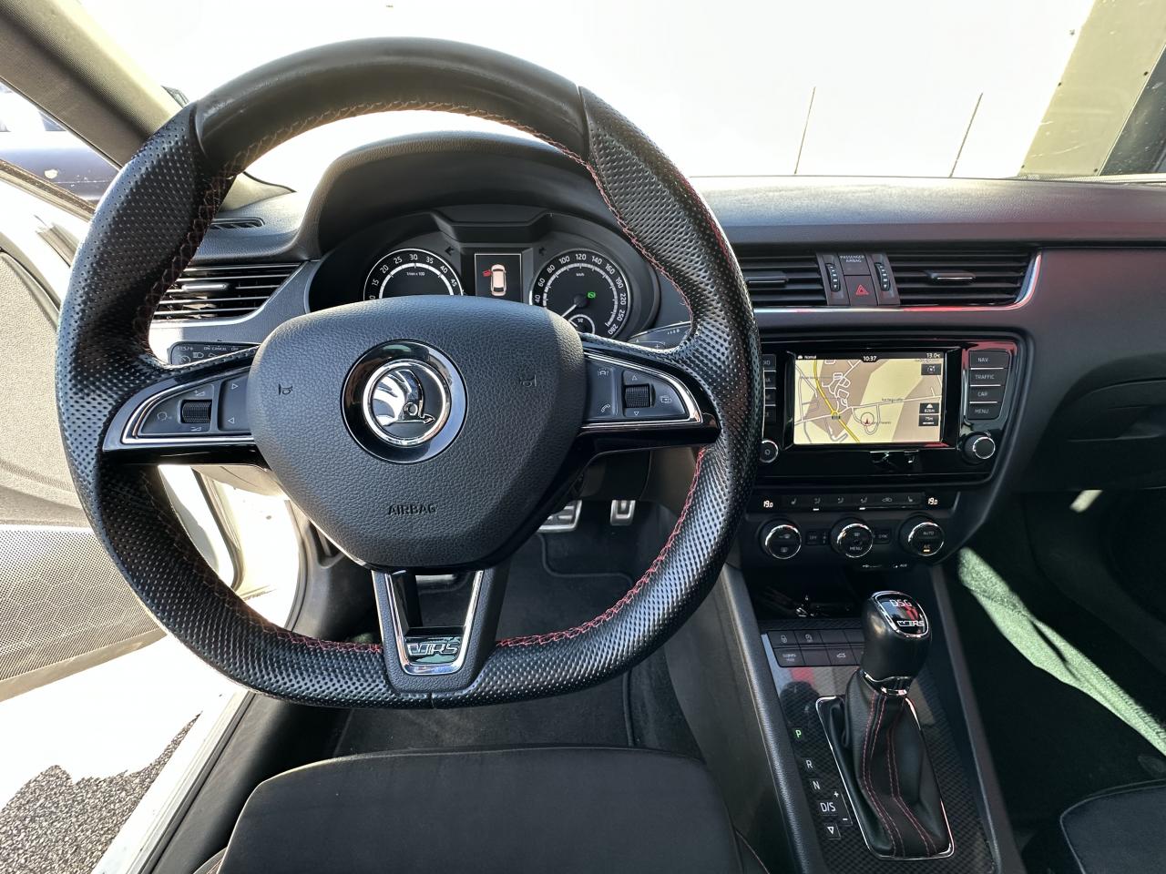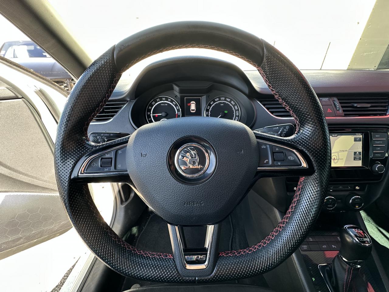 7 airbags + airbag passager déconnectable8 haut-parleursAide au stationnement avant/arrièreBanquette arrière rabattable 1/3-2/3Caméra de reculChâssis “Sport”Climatisation automatique bi-zone “Climatronic"Contrôle de pression des pneus ( TPMS )ESC incluant ABS, EBD, MSR, ASR, EDL, HBA,DSR, ESBS, XDS,et freins multi-collisions MKBOrdinateur de bord grand écran "Maxi-Dot" couleurPack VisibilitéPédalier en aluminiumPetit Pack CuirRégulateur de vitesseRétroviseurs extérieurs électrochromatiques et rabattable électriquementRoue de secours “galette”Sellerie cuir-tissu spécifique RSSystème de navigation GPS couleur "Amundsen" avec cartographie Europe de l'Ouest, écran tactile et lecteur de carte SDSystème mobile Bluetooth à reconnaissance vocaleSystème Smartlink (Mirrorlink, Android Auto, Carplay)Système Start/ Stop avec récupération d'énergie de freinageVerrouillage centralisé à distanceVitres avant et arrière électriquesVolant cuir 3 branches multifonctions Radio/Téléphone avec palettes au volant