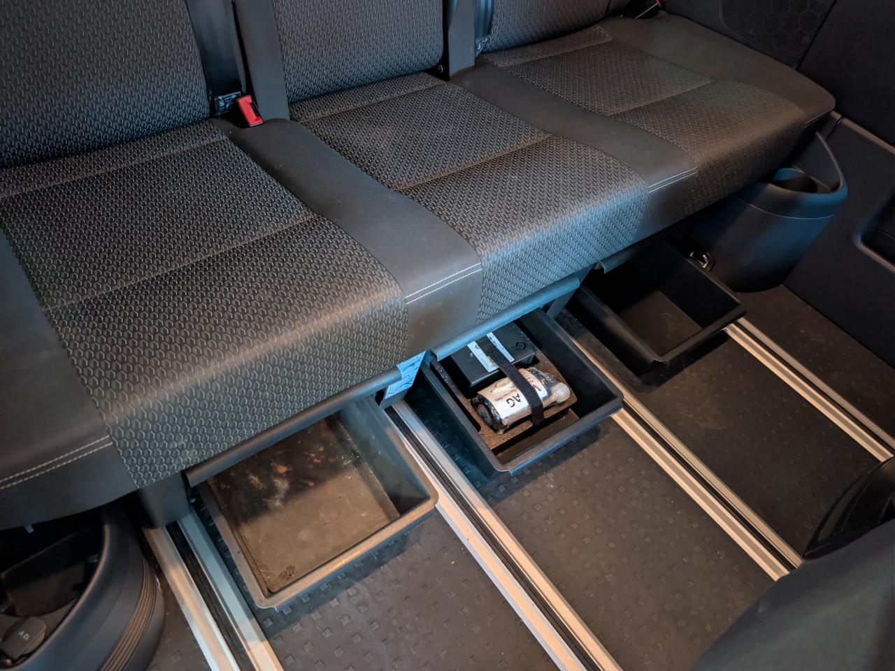 2 clés pliantes radiocommandées pour le système de verrouillage centralisé2 pare-soleil orientables avec miroir de courtoisie2 sièges pivotants avec réglage longitudinal sur système de glissières, dans la 2e rangée de siègesAssistant de démarrage en côteBoîte à gants verrouillableClimatisation "Climatic" avec chauffage dans l'espace passagersEclairage jour (allumé en permanence pendant la marche)Fonctionnement intermittent des essuie-glaceHayon arrière vitré avec essuie-glace et dégivrageLève-vitres électriquesPare-chocs (plastique) peintsPneus 215/65 R16C 106/104T à résistance au roulement optimiséePoints de fixation pour sièges-enfant IsofixPorte coulissante à droite dans l'espace passagersPrises 12 VRéglage en hauteur des sièges conducteur et passagerRégulateur de vitesseRéservoir 70 LRétroviseur extérieur, réglable et dégivrant électriquementRétroviseurs extérieurs et poignées de portes noirsSellerie en tissu 'Kutamo'Siège conducteur et passager ”Confort” avec appuis lombaires à réglage manuel et accoudoirs (non pivotants)Système de contrôle de trajectoire (ESP), Antiblocage des roues (ABS) et Assistance au freinage d'urgence (AFU)Système Start/ Stop avec récupération d'énergie de freinageTable de camping située dans la porte coulissante (pour intérieur et extérieur)Volant cuir multifonction avec éléments de commande pour radio et téléphone portableVolant et pommeau de levier de vitesses en cuir