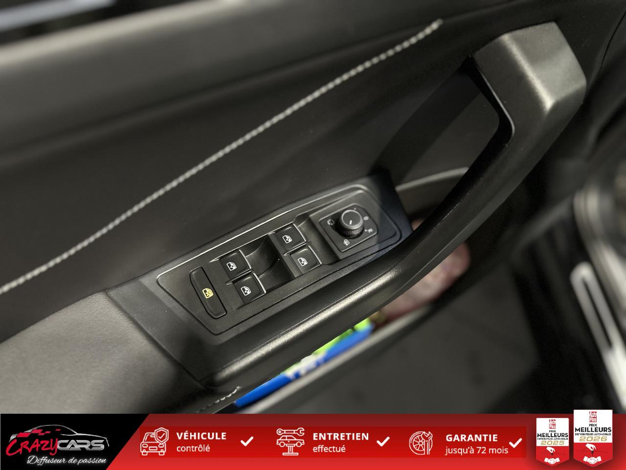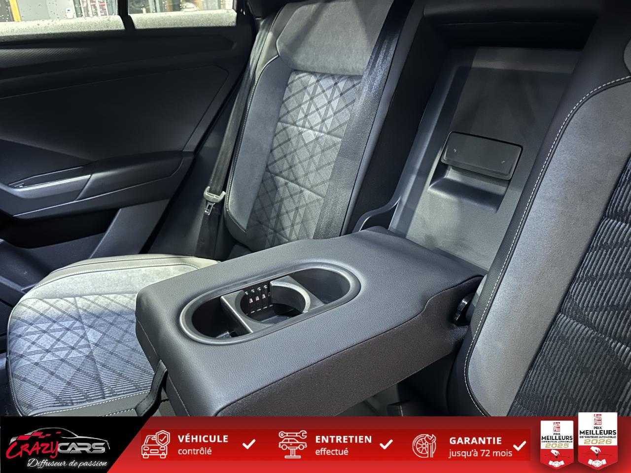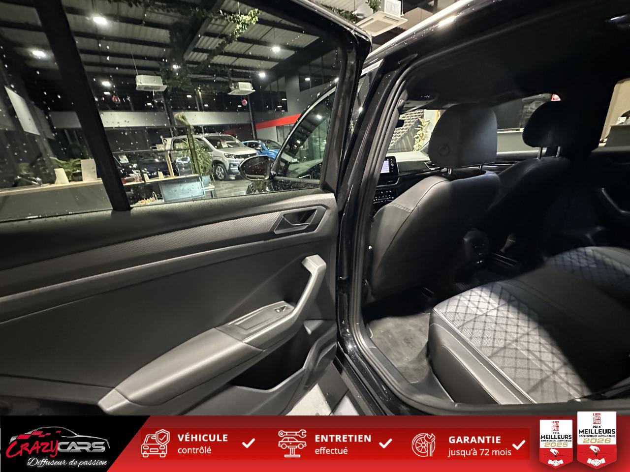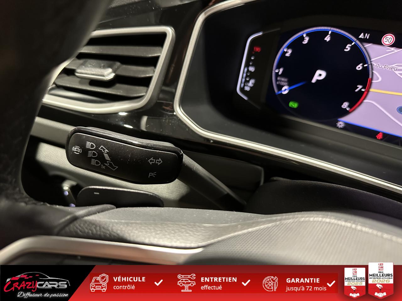 ‘Fatigue Detection' : Système de détection de fatigue du conducteur qui analyse le comportement du conducteur et recommande un temps de repos par l'apparition d'un message visuel et sonore6 haut-parleursAide au démarrage en côte ‘Hill-Hold'App-Connect sans filAssistant de changement de voie Side AssistCaméra de recul 'Rear View'Châssis sport & Direction progressiveClimatisation automatique ‘Climatronic’ bi-zone avec filtre antiallergène, réglable séparément pour le conducteur et le passager avantCommutation automatique des feux de croisement et de route, Light AssistCorrecteur électronique de trajectoire ESPDigital Cockpit Pro : combiné d’instruments digital avec écran digital haute résolution couleur de 10.25”Ecran couleur tactile 8"Frein de stationnement électromécanique avec fonction d'immobilisation en pente ‘Auto-Hold'Front AssistInterface Bluetooth pour téléphone portable (mains-libres)Keyless Access : Système de verrouillage/déverrouillage sans clé et démarrage avec bouton start/stopKit de dépannage : compresseur 12 volts et produit d'étanchéité de pneuLane Assistant : assistant de maintien dans la voieLogo R-Line sur la calandre et les ailesOEillets d'arrimage ISOFIX (dispositif pour fixation de 2 sièges-enfant sur la banquette arrière)Pack Aide à la conduitePack VisibilitéPalettes au volantPare chocs arrière spécifiques R-Line dans la couleur carrosseriePare chocs avant spécifique R-Line dans la couleur carrosseriePartie extérieure et appuie-tête en similicuir et surpiqués en Gris. Logo R-Line sur les sièges avantProjecteurs antibrouillard avant avec éclairage statique d'intersectionProjecteurs avant LED PlusRéception radio numérique DAB+Régulateur de vitesse adaptatif avec limiteur de vitesseRétroviseur extérieur asphérique côté conducteurRétroviseur extérieur passager à surface convexeRétroviseurs extérieurs à réglage électrique avec mémoire, rabattables électriquement et dégivrantsSign Assist: Reconnaissance des panneaux de signalisation et affichage sur l'ordinateur de bord et l'écran du système de radionavigationSystème Navigation & Infotainment ‘Discover Media' avec “Services de streaming et radio via Internet” via carte eSIM intégréeVitres arrière et lunette arrière surteintées à 65%Volant multifonction en cuir avec surpiqûre et logo R-LineVolant Sport